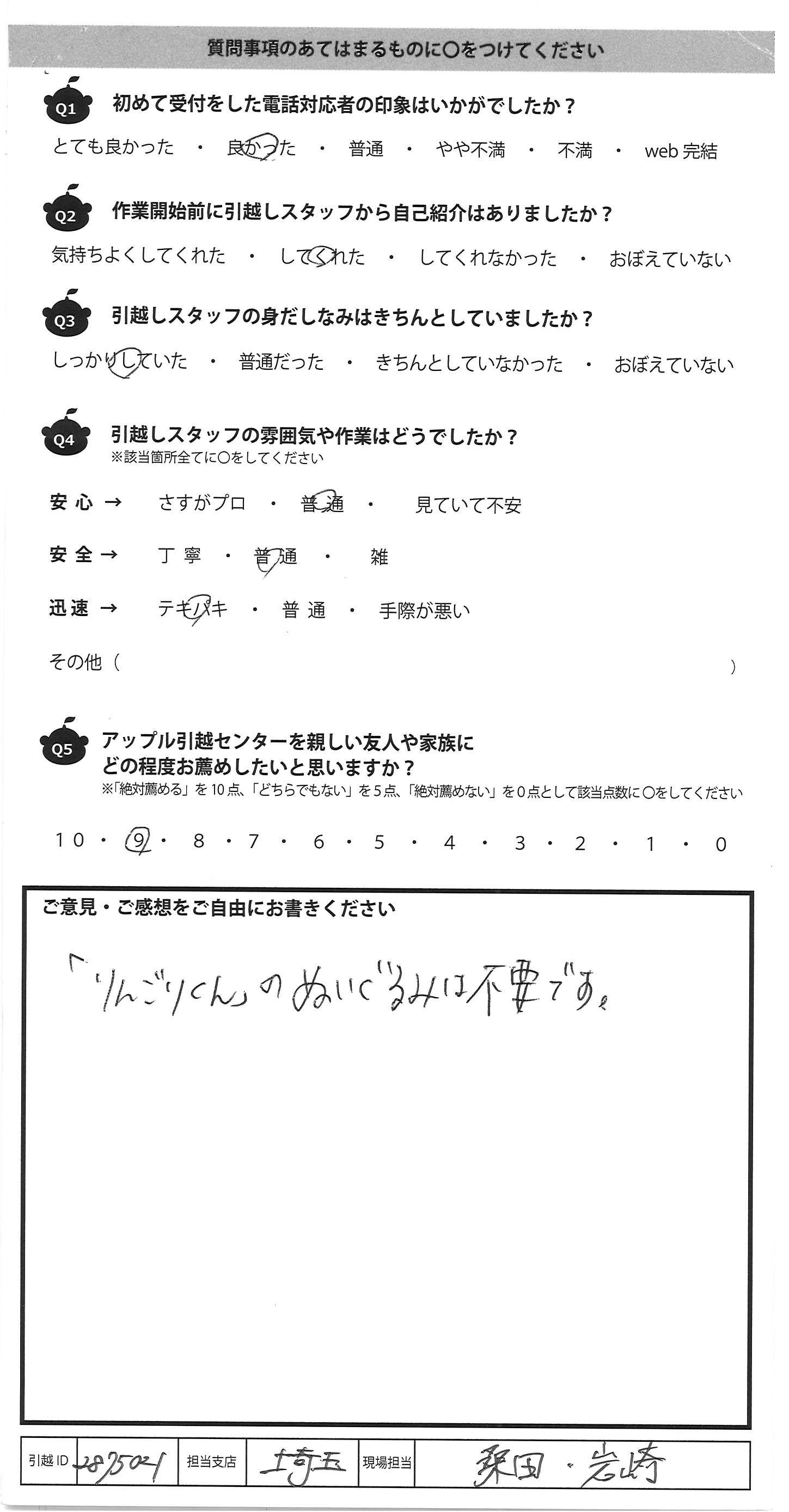 アップル引越センターでは、面映いお褒めの言葉も、胸に突き刺さるお叱りのコメントも、