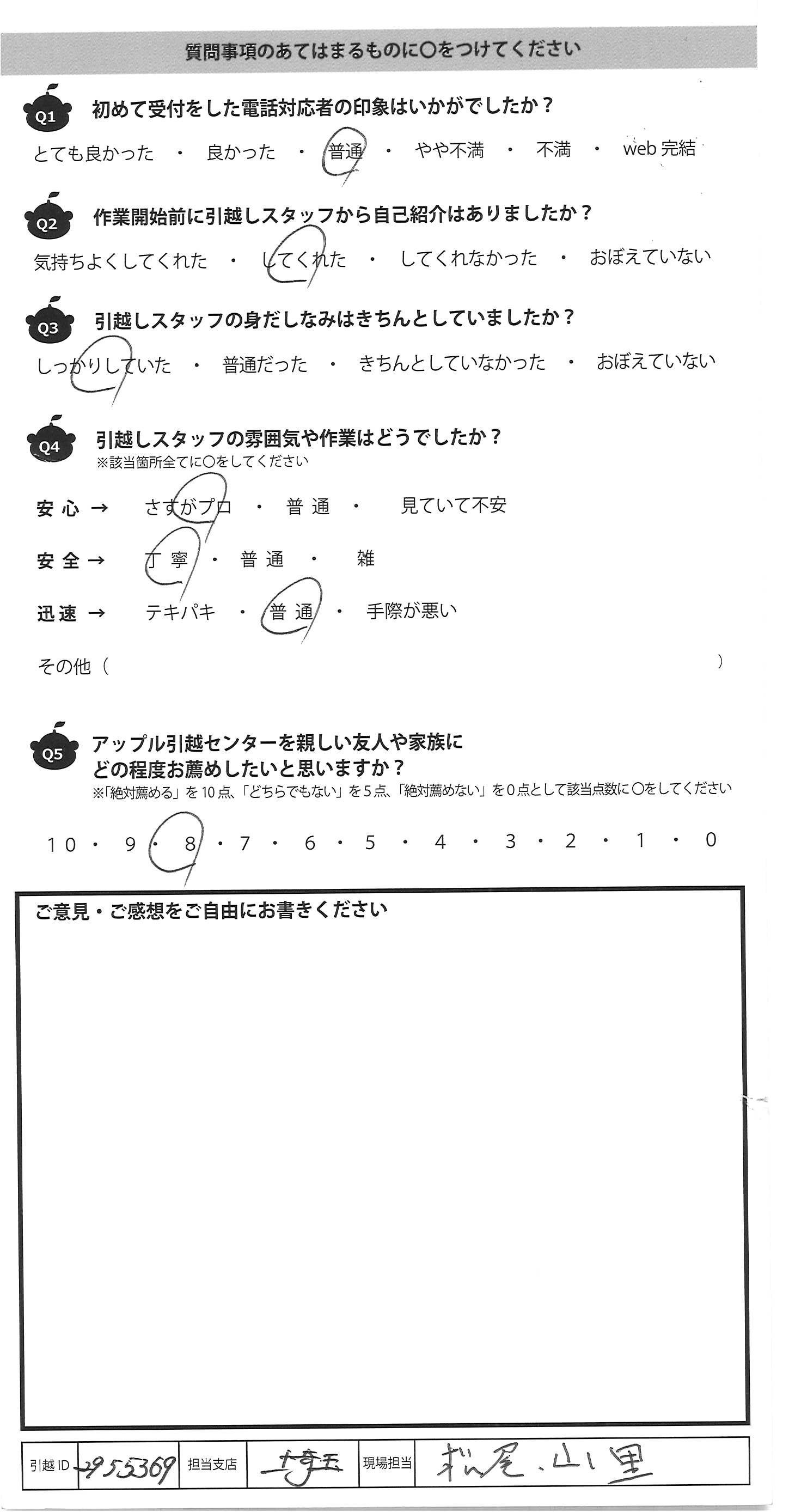 アップル引越センターでは、面映いお褒めの言葉も、胸に突き刺さるお叱りのコメントも、