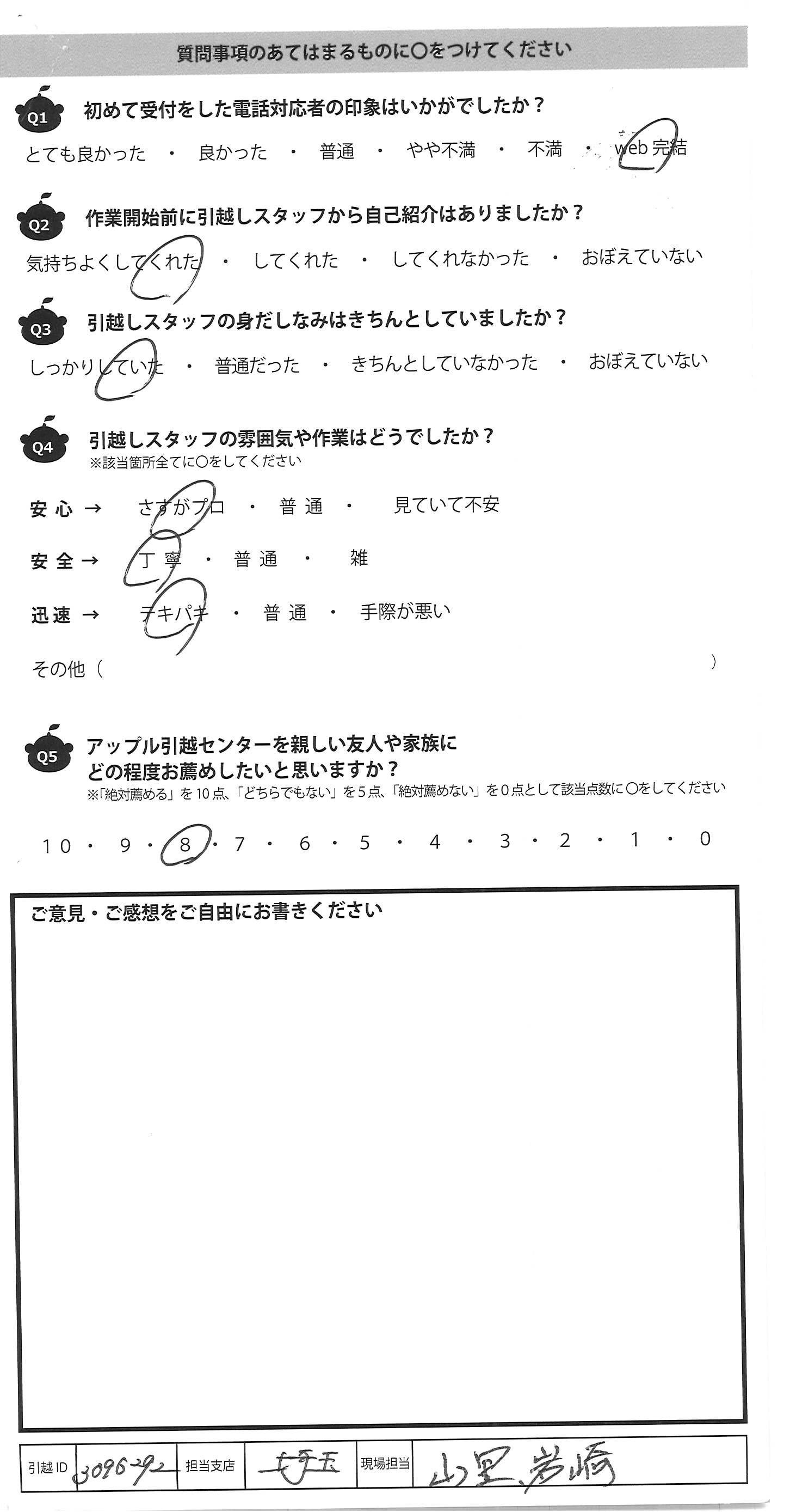 アップル引越センターでは、面映いお褒めの言葉も、胸に突き刺さるお叱りのコメントも、