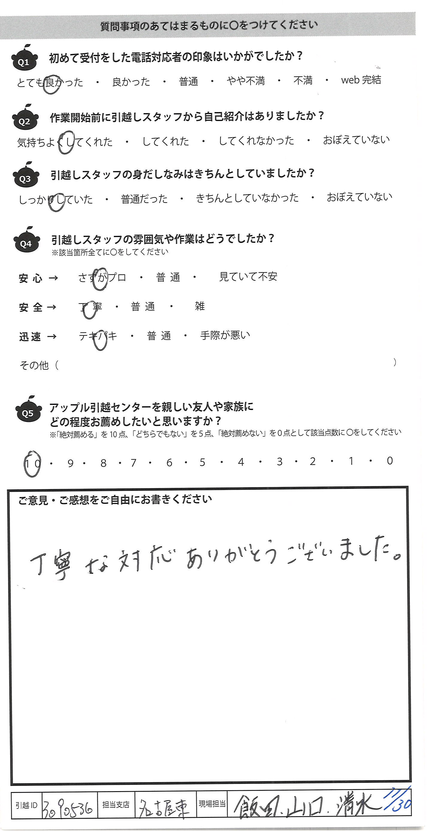 A.とても親切、丁寧に作業していただきありがとうございました。