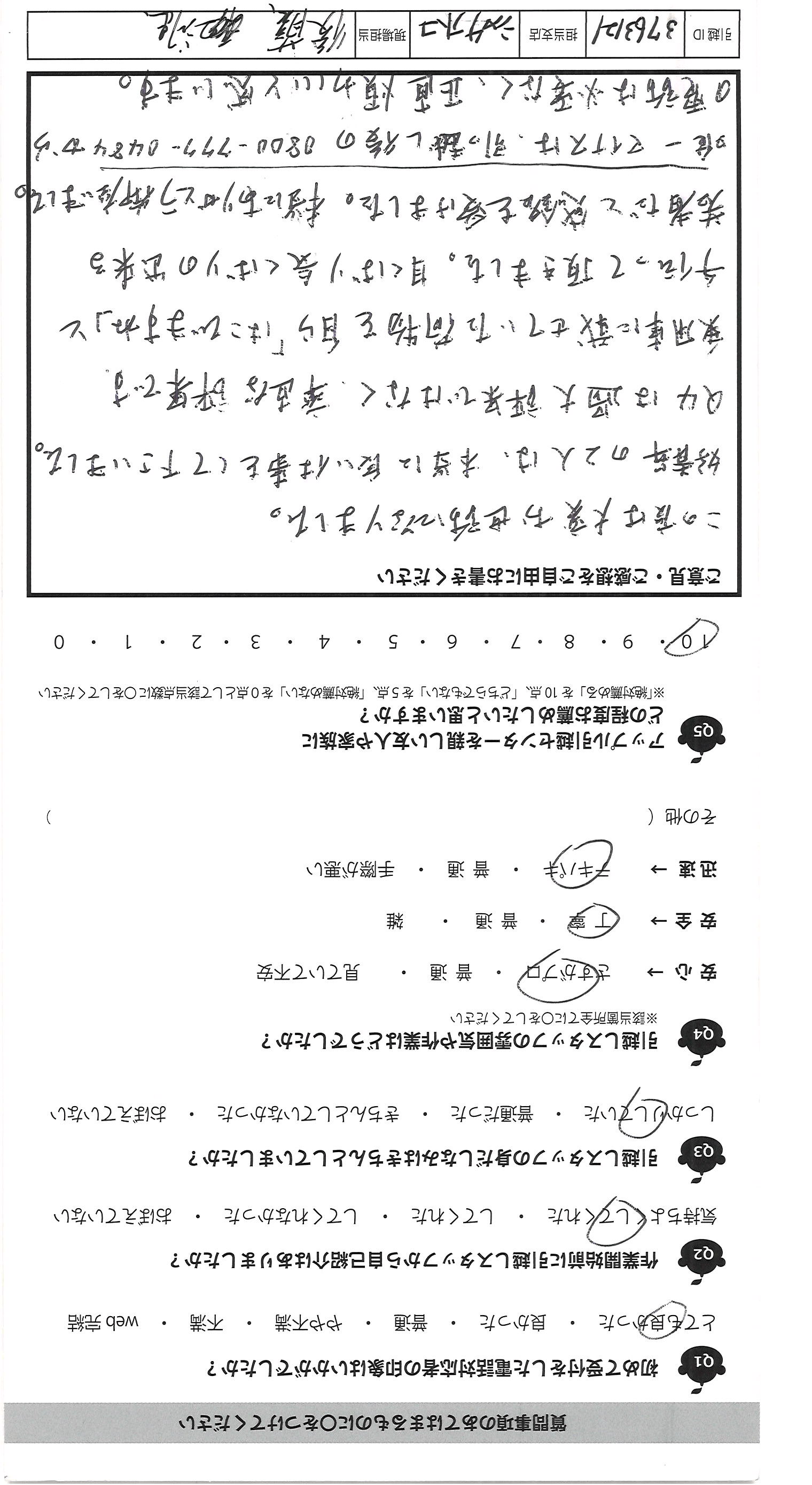 A.この度は大変お世話になりました。 好青年の2人は、本当に良い仕事をして下さいました。 Q4は過大評果ではなく、率直な評果です。 乗用車に載せていた荷物を自ら「はこびますね」と 手伝って頂きました。目くばり気くばりの出来る 若者だと感銘を受けました。本当にありがとう御座いました。 唯一マイナスは、引っ越し後の0800-777-0484から の電話は必要なく、正直煩わしいと感じます。