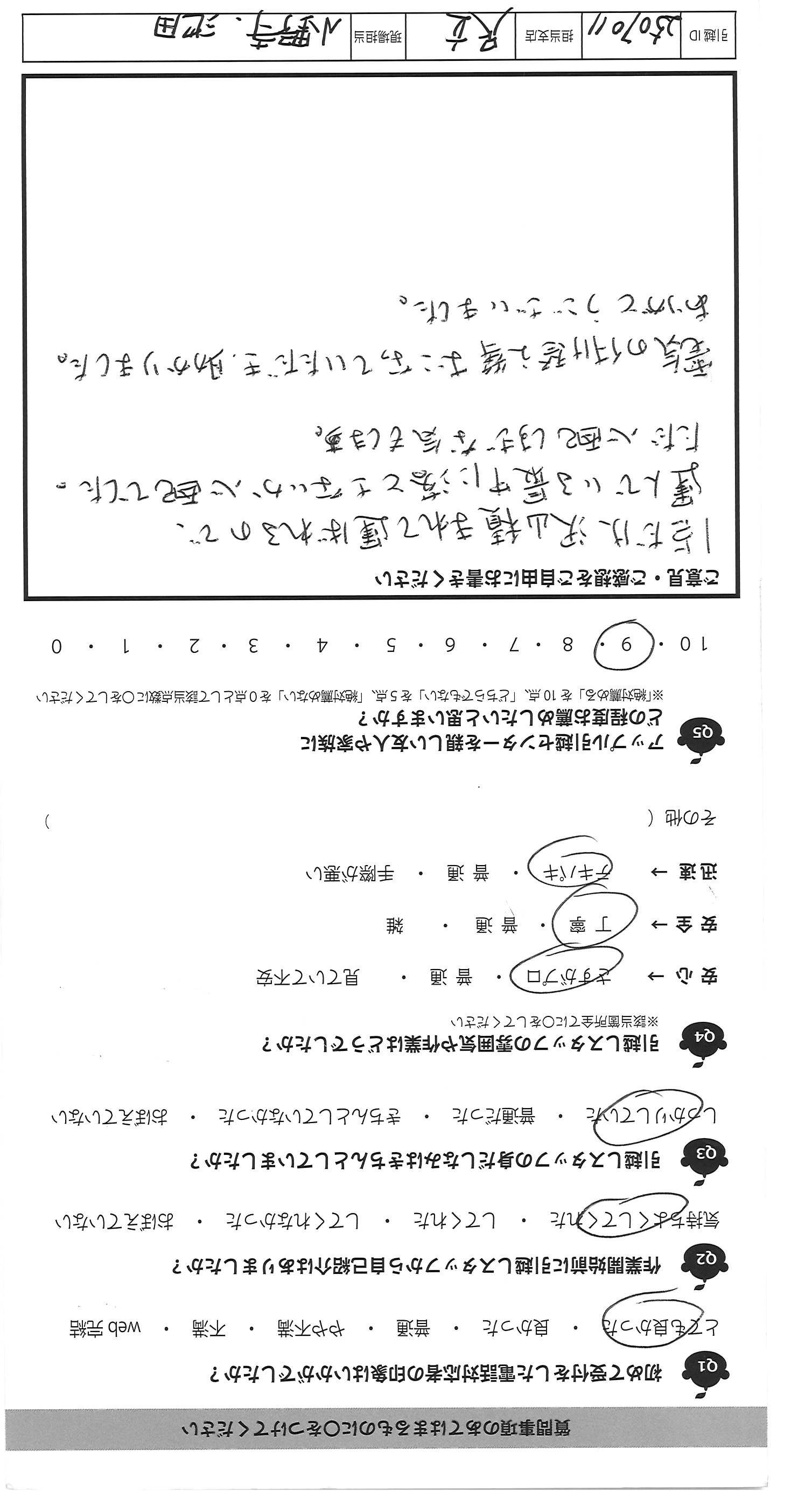 A.①当日のスタッフは3つの作業軸をしっかり身に つけていたプロだったことに好感を持てた。 ②「荷を箱に入れてもらい(細かいもの)ありがとうござ いました」というような意味のことを話してくれました ③二人のスタッフ共礼儀正しく細かいこと(手数料) への質問に対して、具体的に丁寧に対応して下さった。 ④ダンボール箱に書かれてあるメッセージは「引っ越す」 という事への不安や期待などで落ちつかない者もいる中で 「ホット」したことでした。 ⑤契約までの電話対応者の人が住所や約束日等の ミスが気になりました。