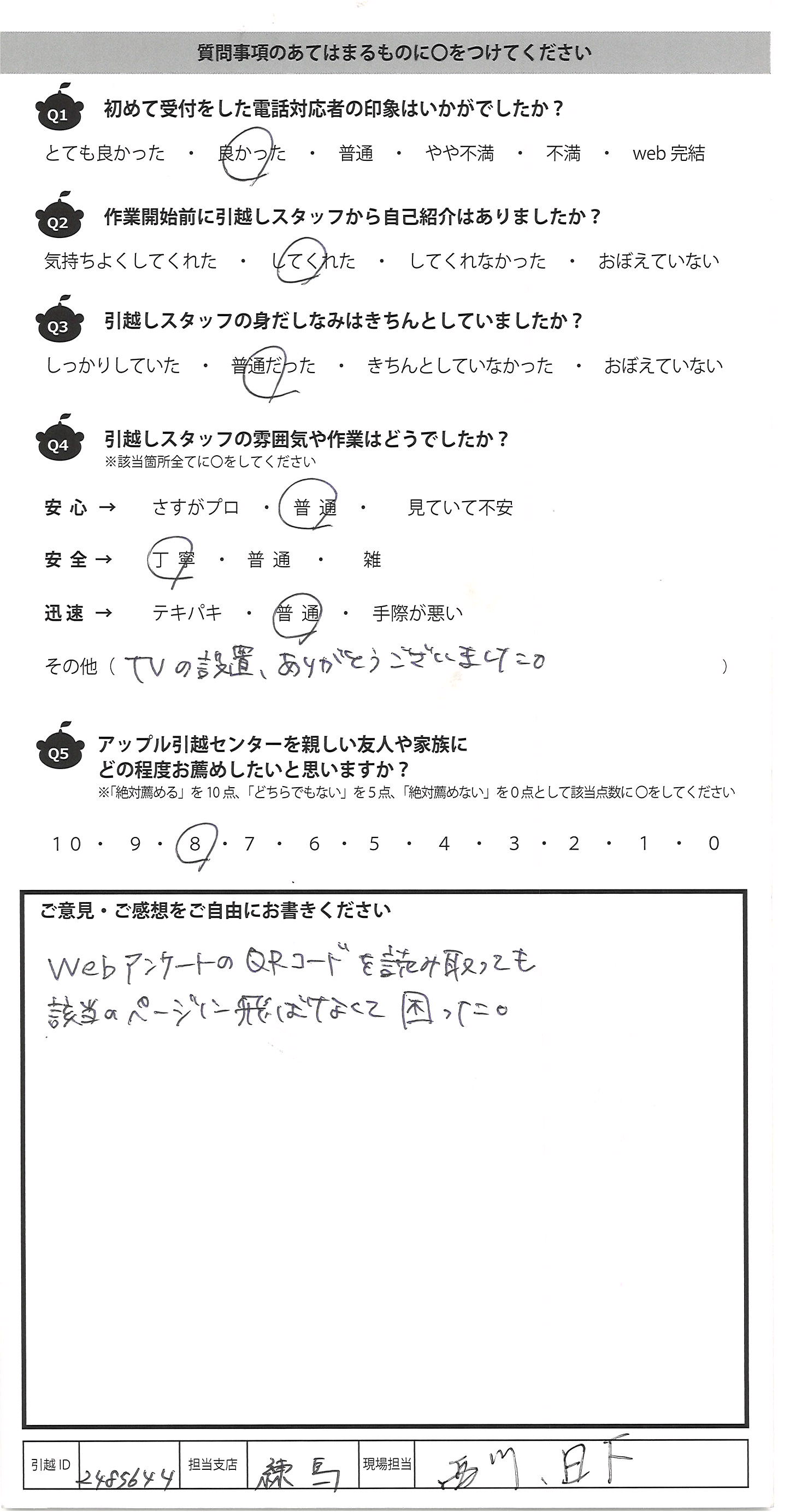 アップル引越センターでは、面映いお褒めの言葉も、胸に突き刺さるお叱りのコメントも、