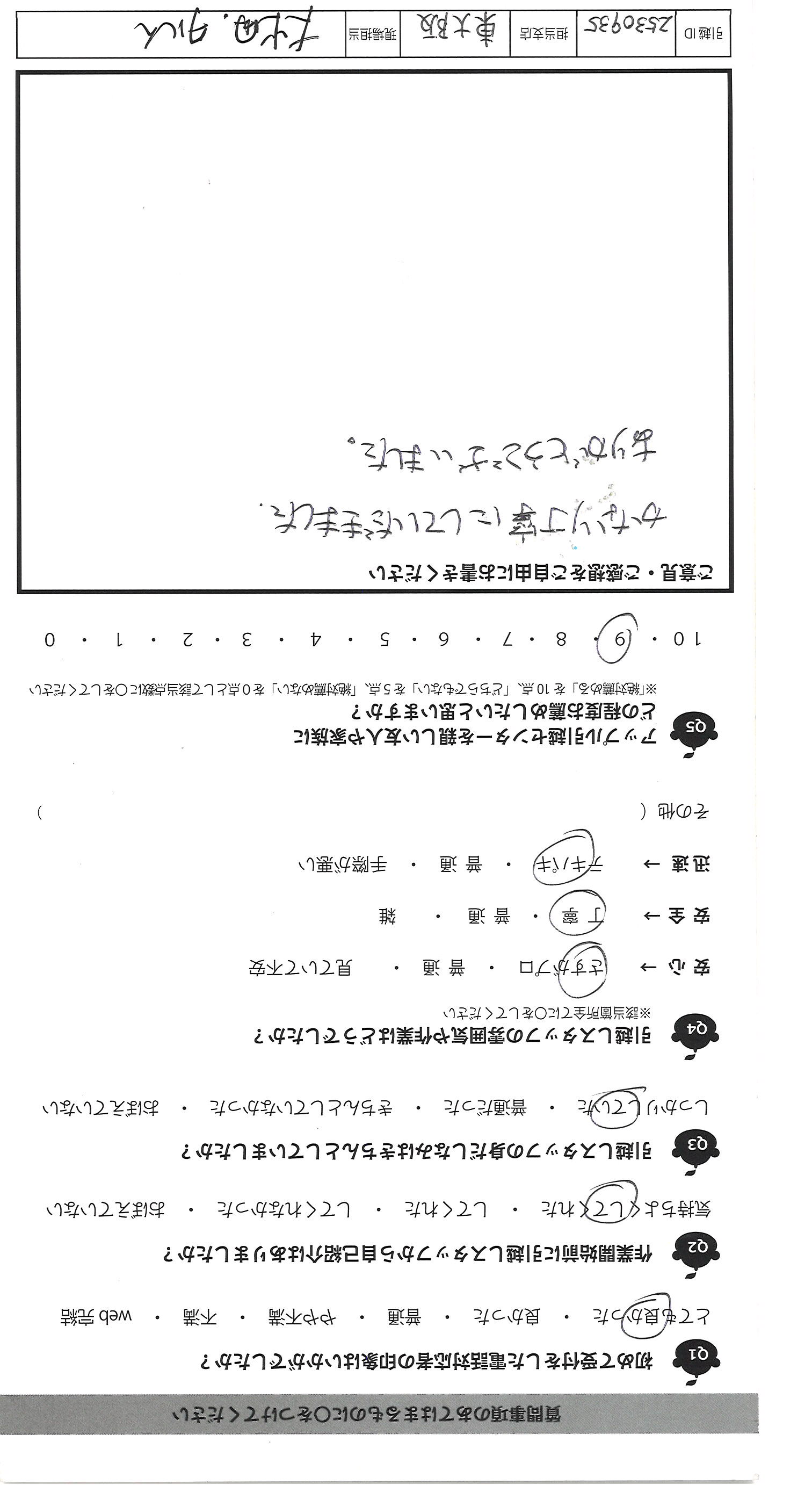 A.この度は大変お世話になりました。 非常にテキパキした仕事ぶりで とても気持ち良く対応頂きました。 又、機会がありましたら、是非利用 したいと思います。