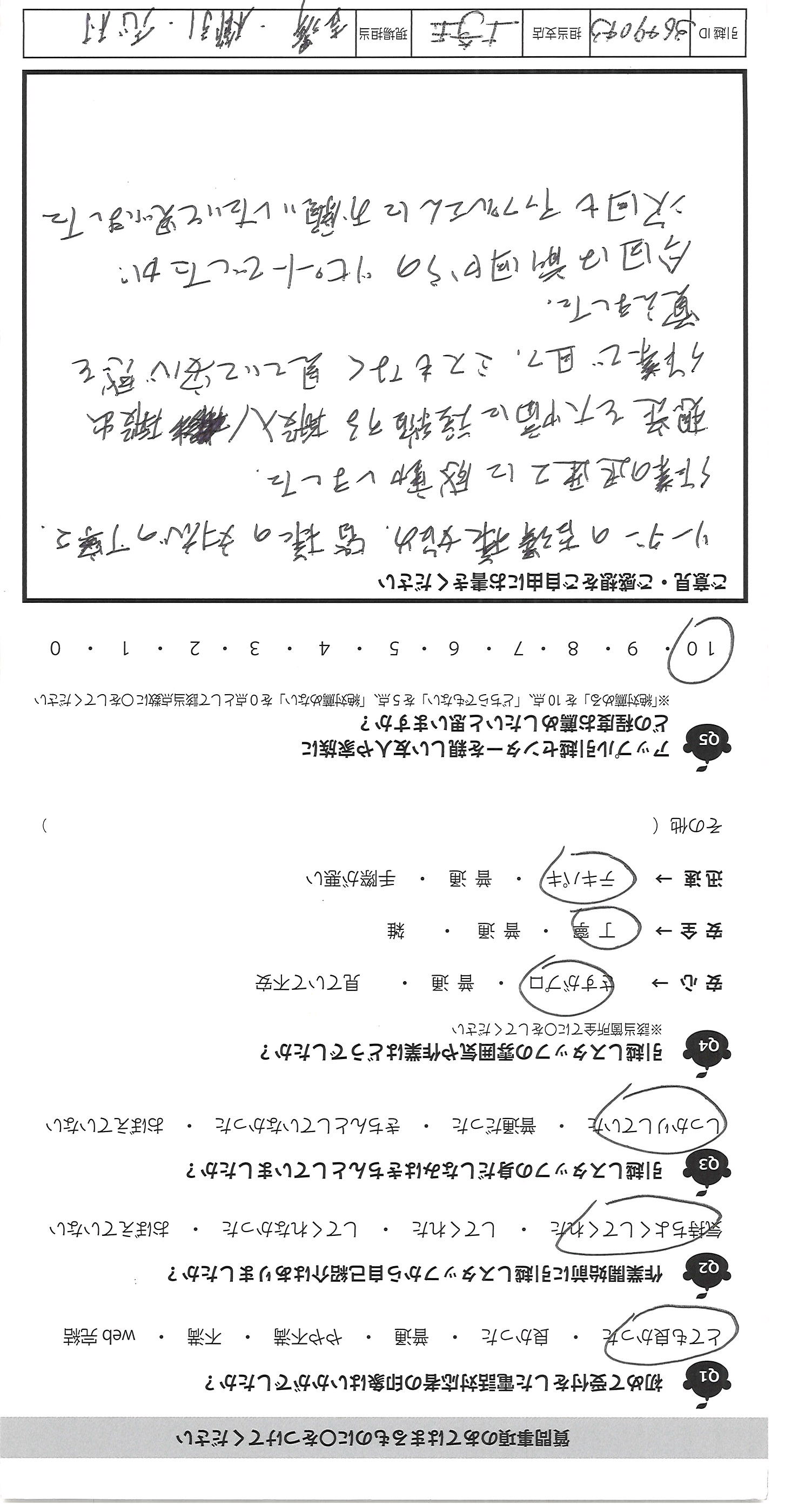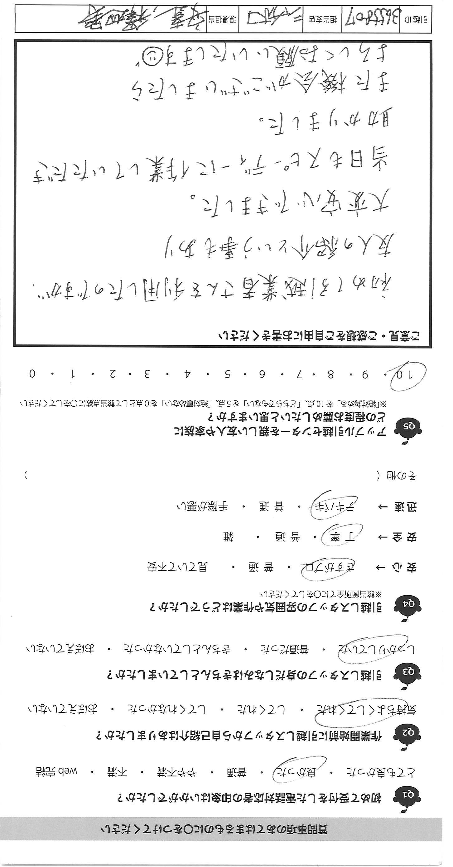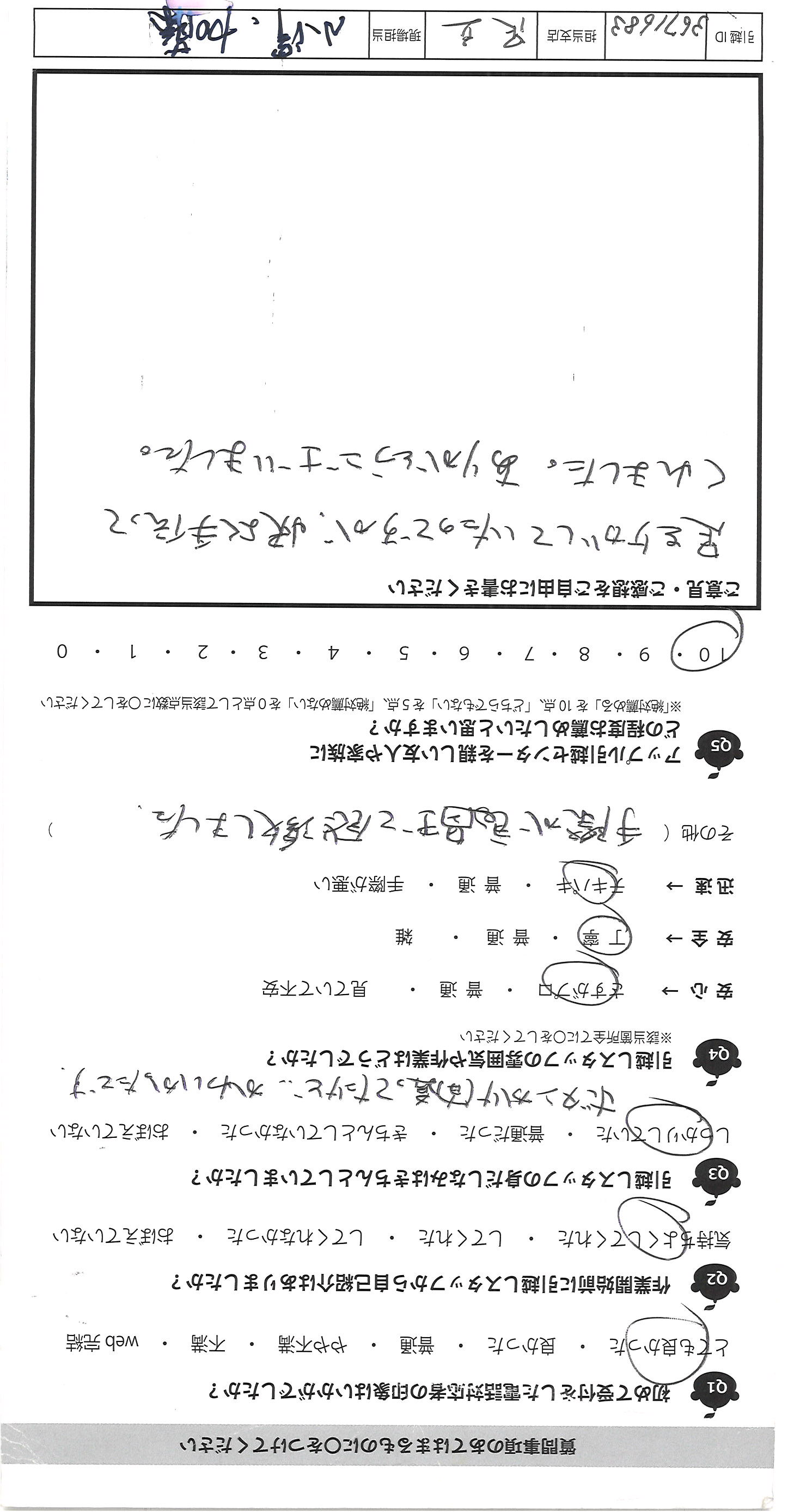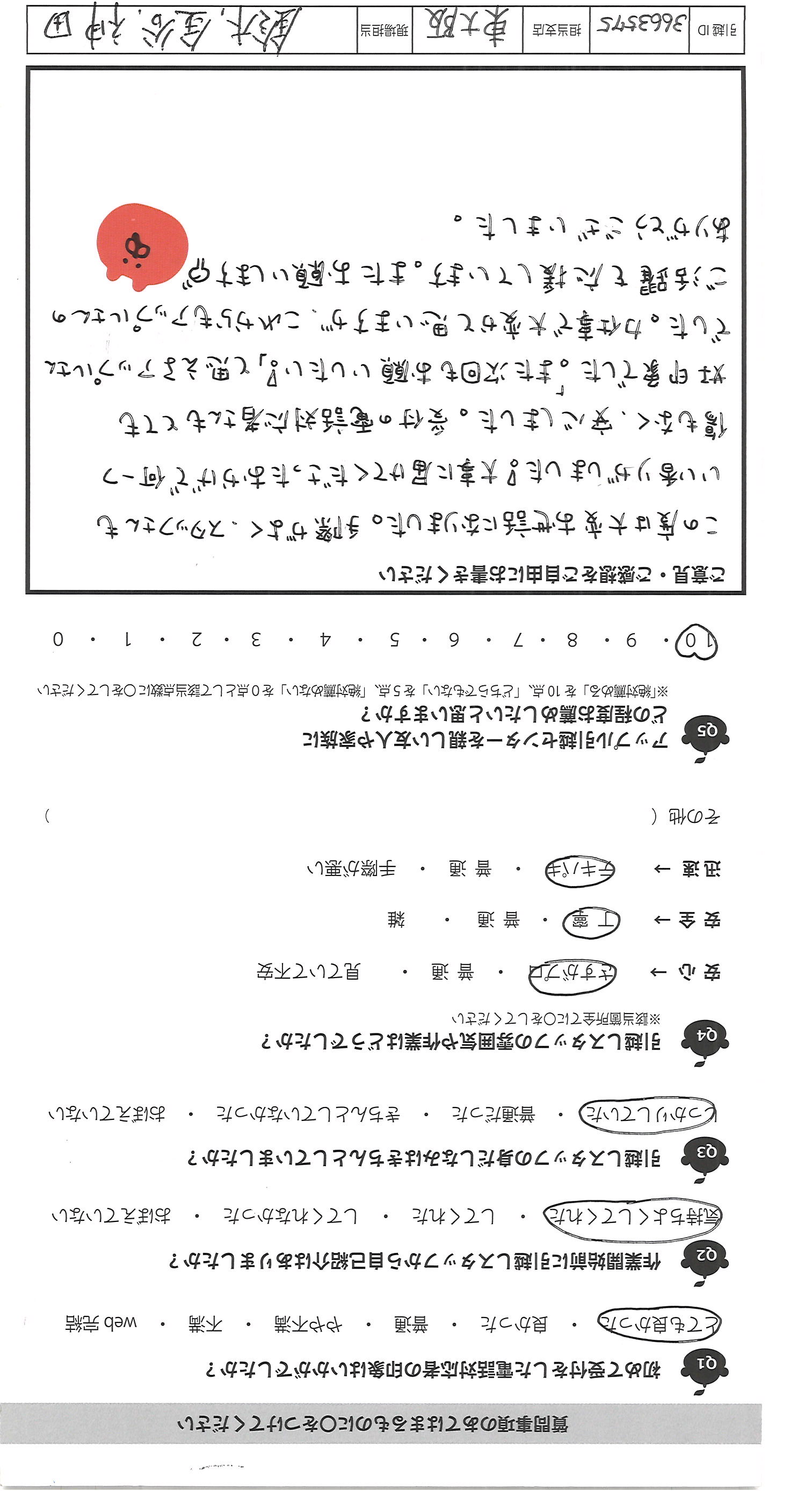 A.今回はたいへんお世話になりました 重い家具をせまい部屋にていねいに はこんでいただいて、ほんとうに感謝 します。山本さんのはこぶ時の気配り や、配線のことまで考えていただいたこと、 すばらしいです。またお世話に なることがあったら山本さんにお願い したいです、ありがとうございました。