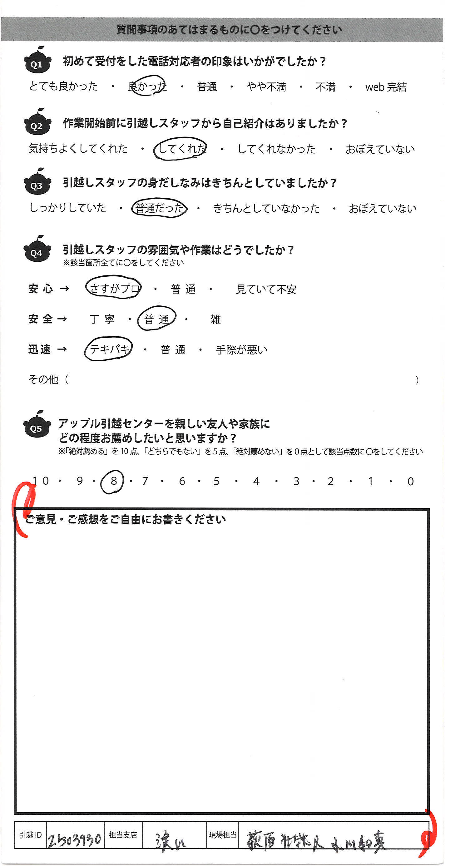 アップル引越センターでは、面映いお褒めの言葉も、胸に突き刺さるお叱りのコメントも、