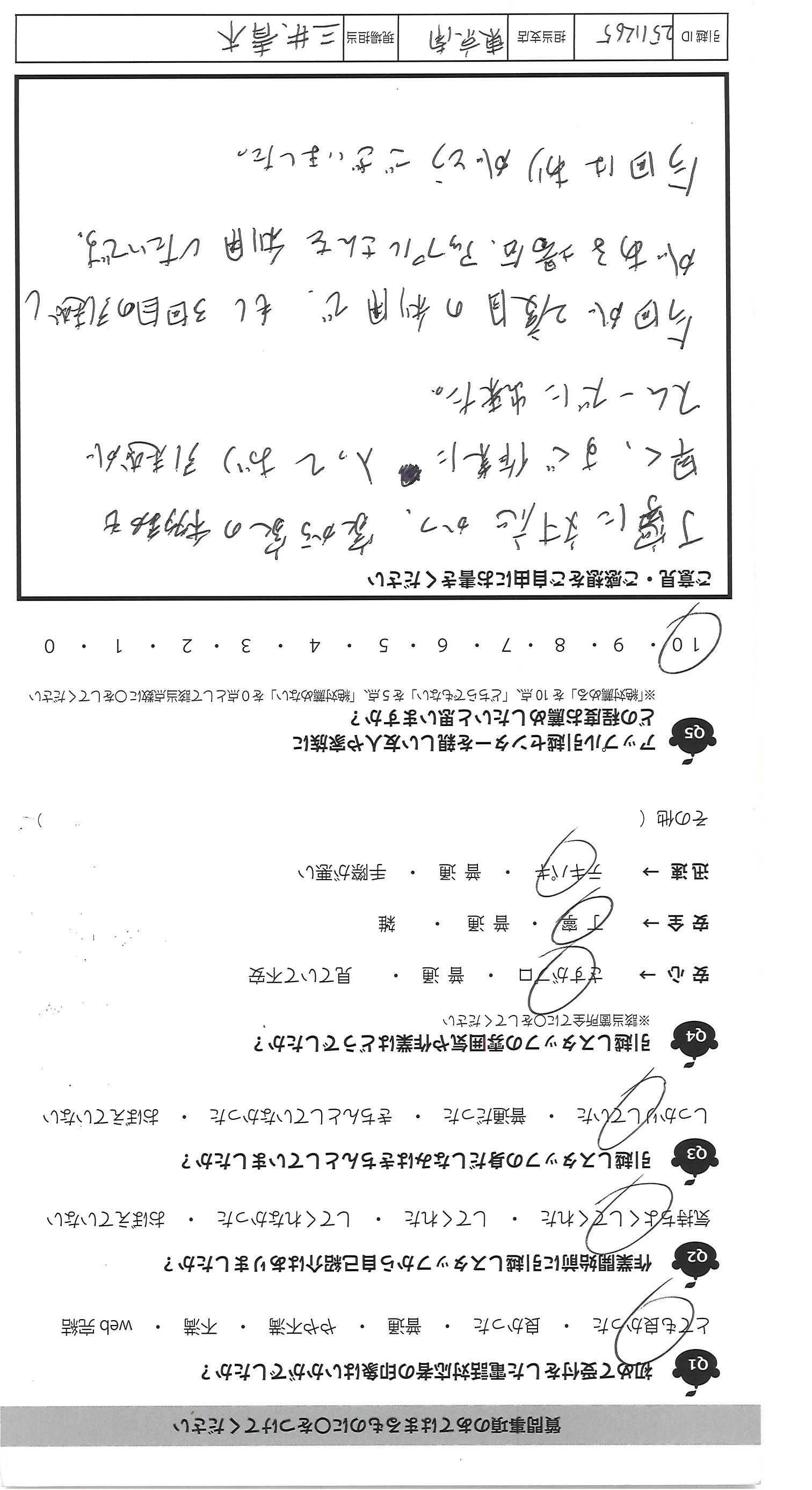 A.今回で御社に引越しをお願いする のは家族含め4回目です。 私は2回目で家族にすすめられて1回目 お願いしましたが、その時は最低でした。 遅いし雑で素人かと思ってました。今回は別の 会社にと思ったのですが、家族が予約してしまった ため、期待せずでしたが、今回は若い女性で しっかりしていて作業もていねいで早く最高でした。 彼女のためになるならと思いこのアンケートも書きました。