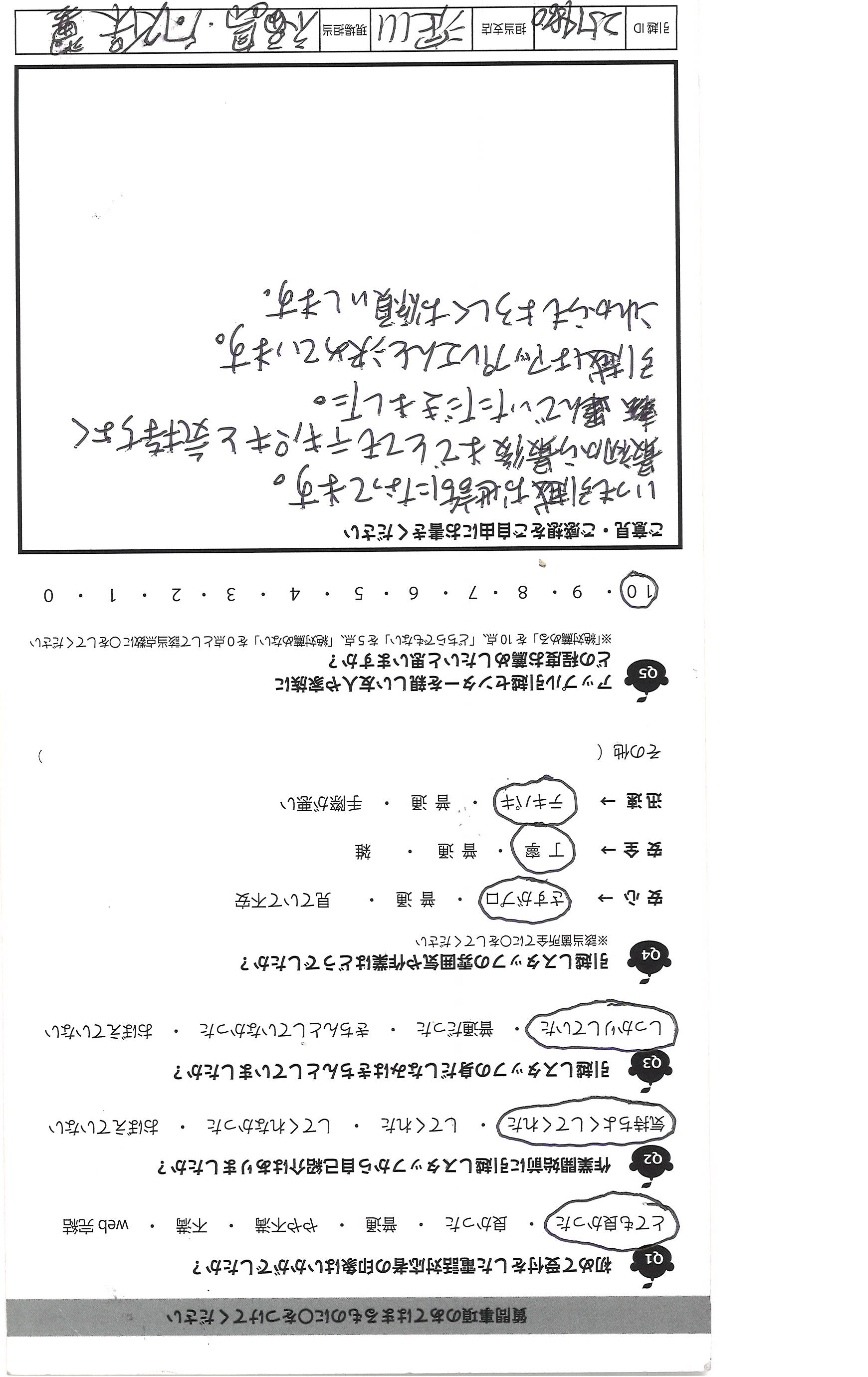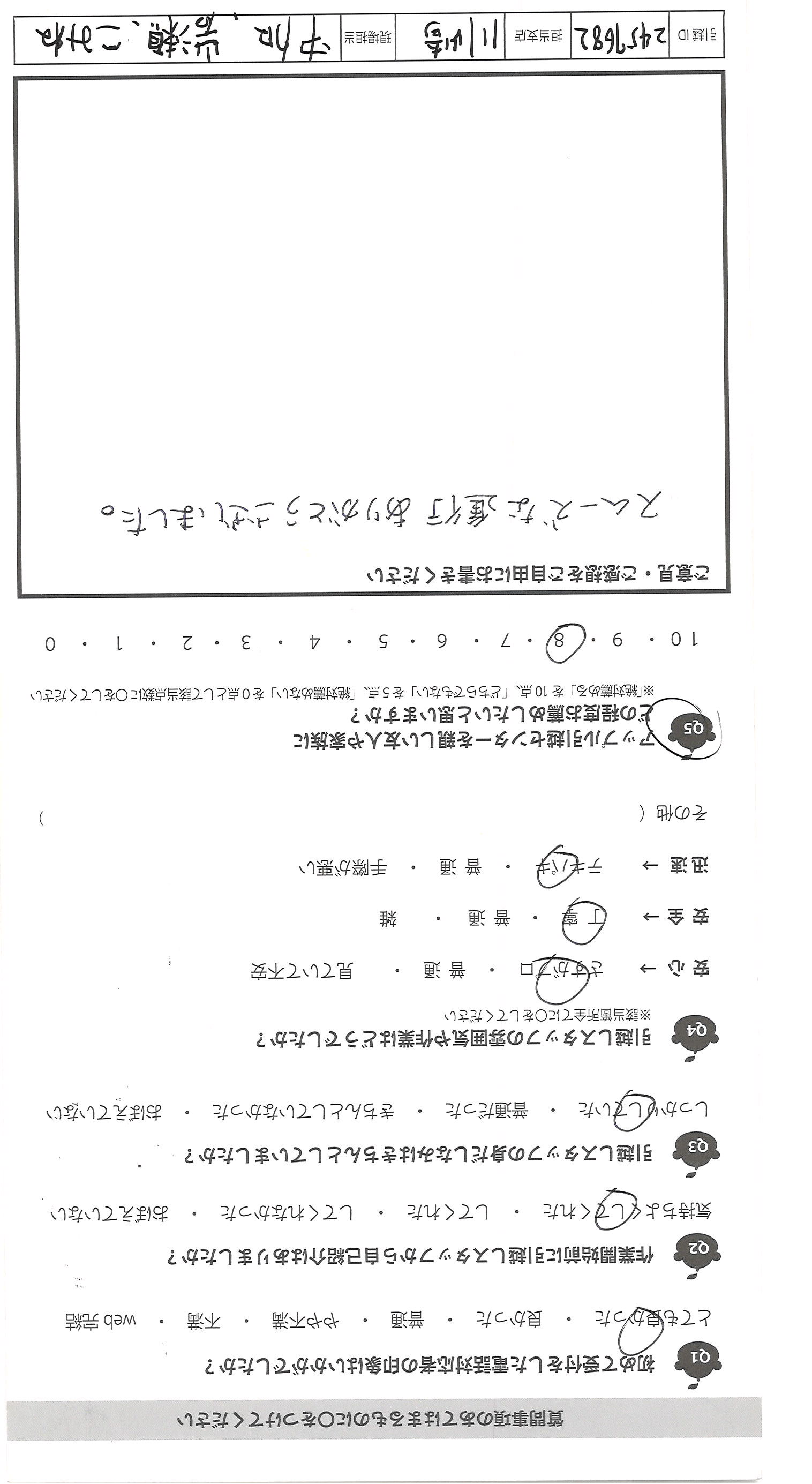 A.このアンケートを渡された際に「10点をお願いします!」と 言われましたが、点数を決めるのはあくまでも利用者側 なので、そういう押しつけはあまり良くないと思います。 それから、前回利用した際に写真撮影はなかったので、 今回いきなりその話を出されて少し驚きました。SNS等 には掲載しないとのことだったので同意しましたが、 後から「何で写真が必要なんだ?誰が見るのか?」と いった不安を少しながら覚えました。事前にWebやメール 等で、撮影がある旨を告知いただけるとありがたかった です。 ですが、担当して下さった方々は明るく感じが良かった ため、安心して気持ち良く引っ越しができました。 次回もまた利用したいと思います。