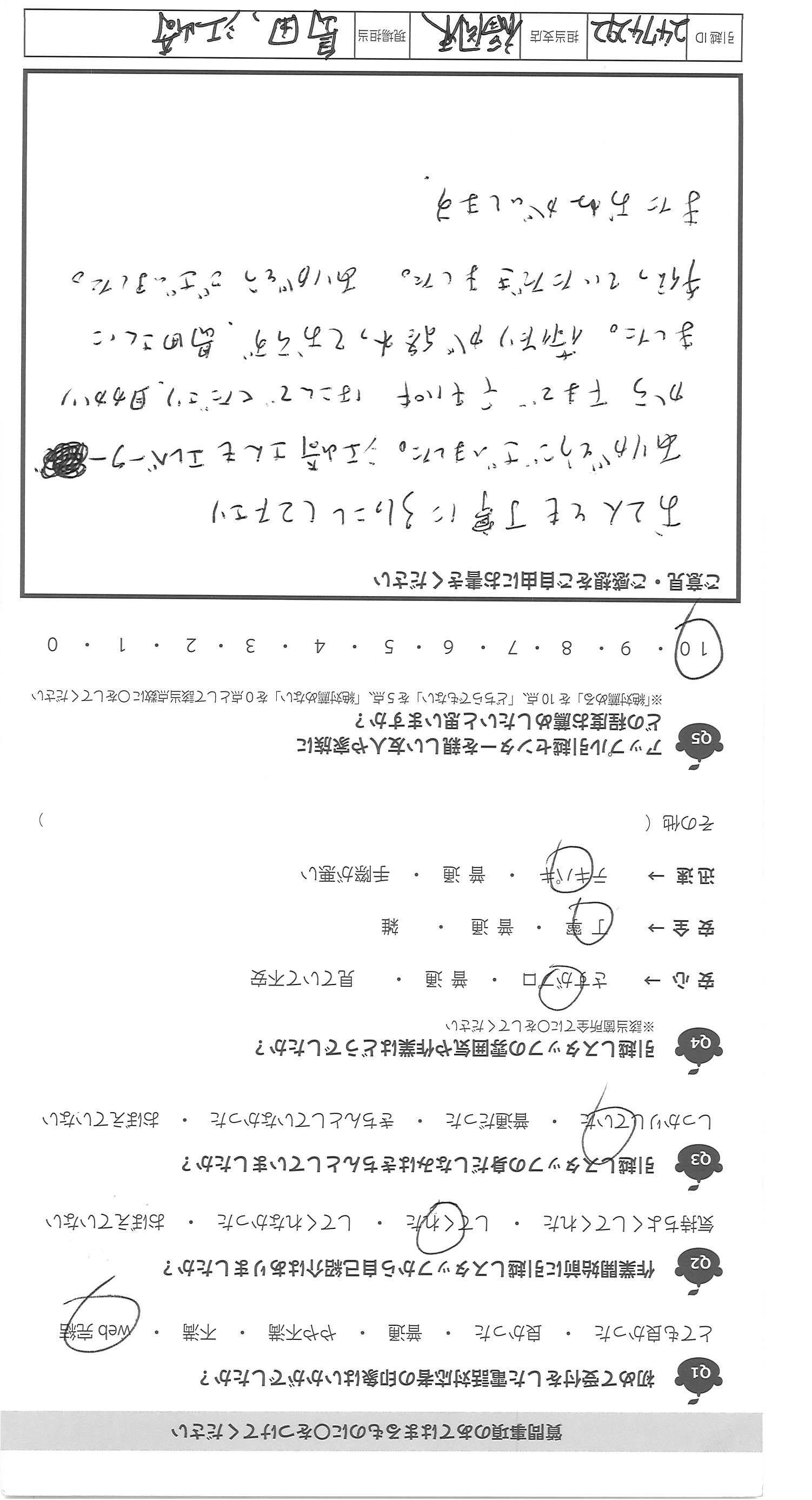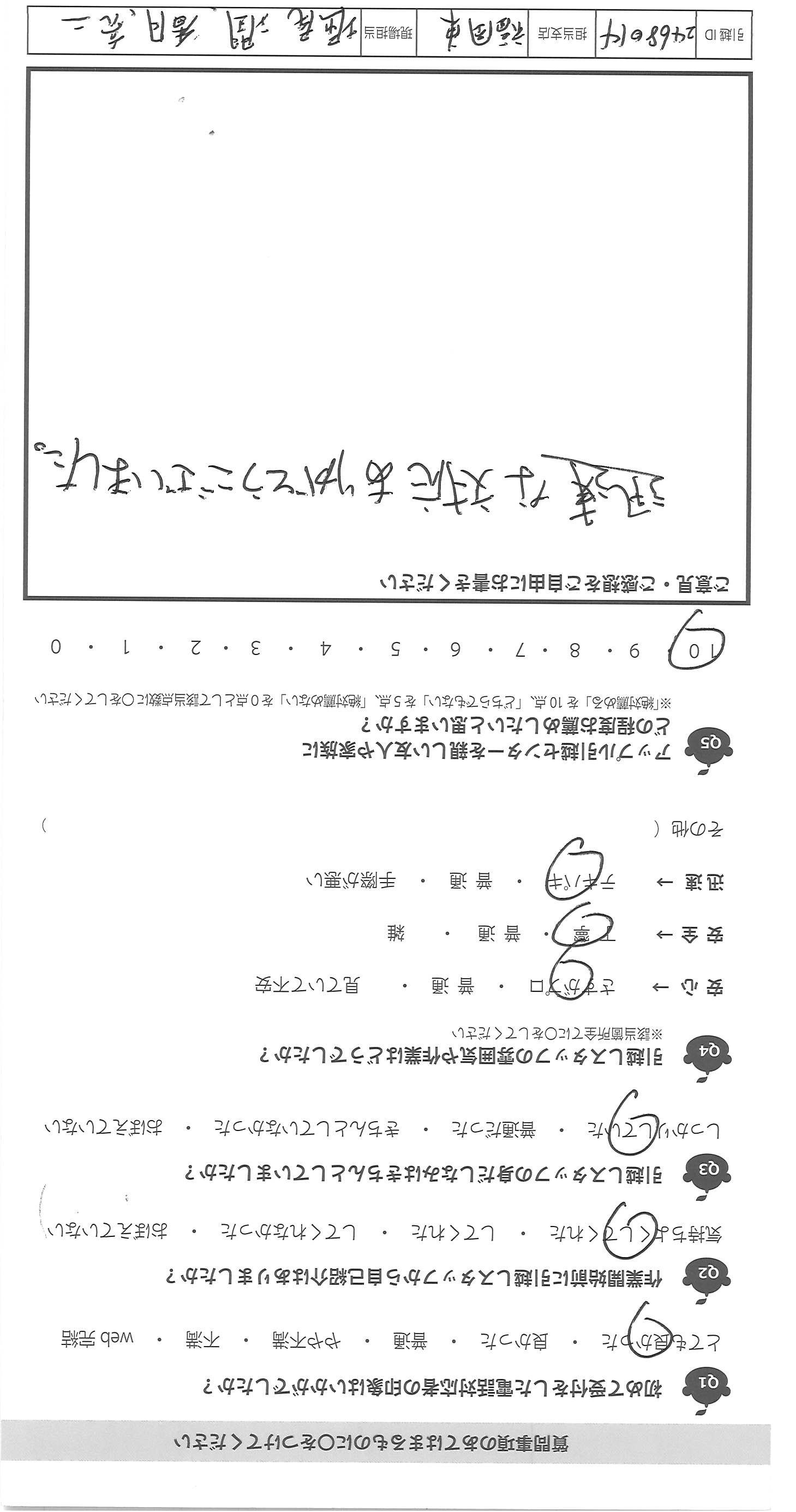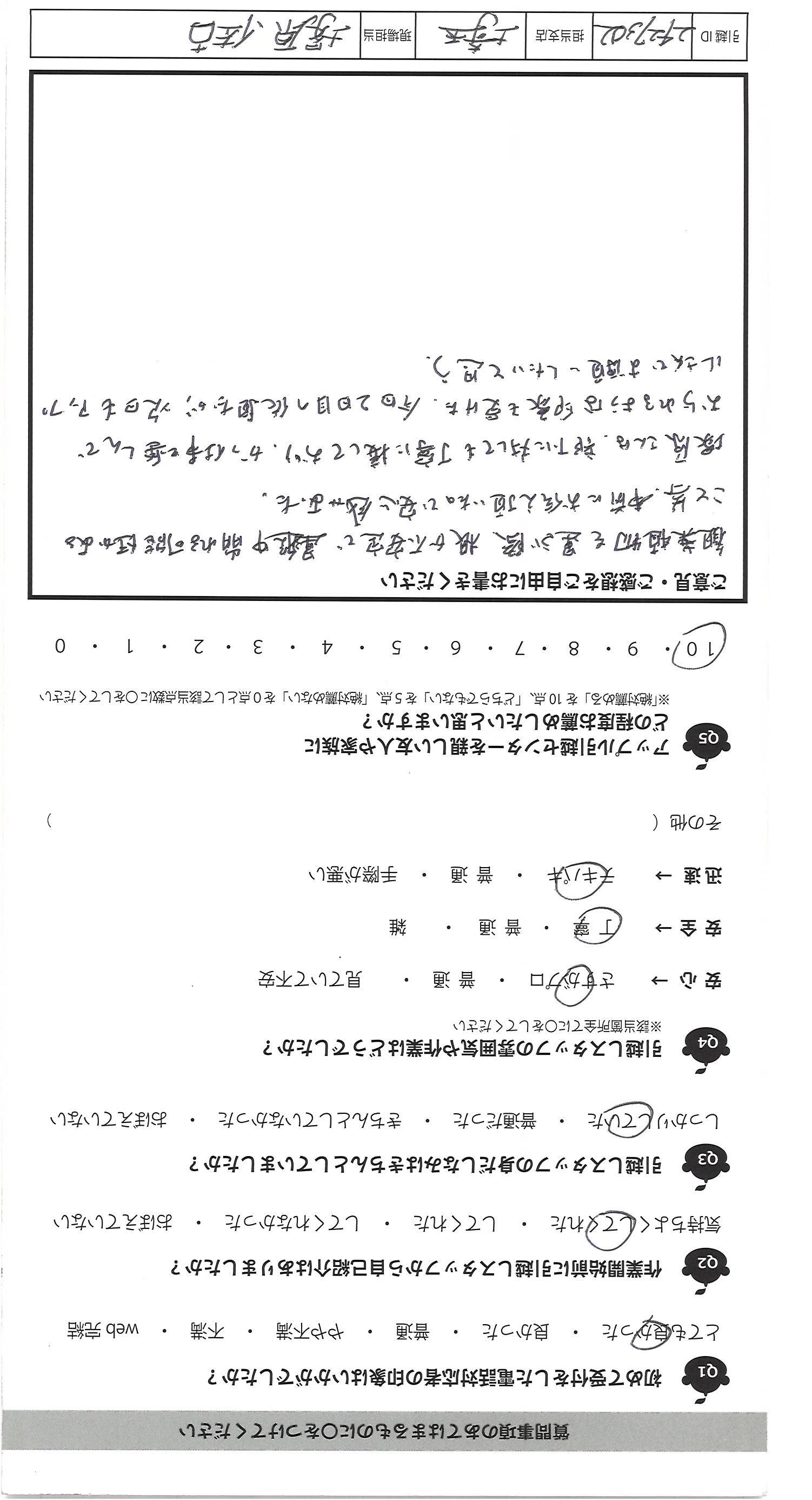A.スピード感のある対応で、安心してお願いすることが できました。これまで経験した引越では、私たちお客さん に対しての話し方は丁寧ですが、それ以外仲間同士の 話し方や雰囲気が良くないことが多かったのですが、 貴社は、一緒に働く者同士、仲良く、信頼しながら 働いていらっしゃる印象でした。次回以降も貴社にお願 いしようと思いました。友人、知人にもオススメしておきます。 ありがとうございました!