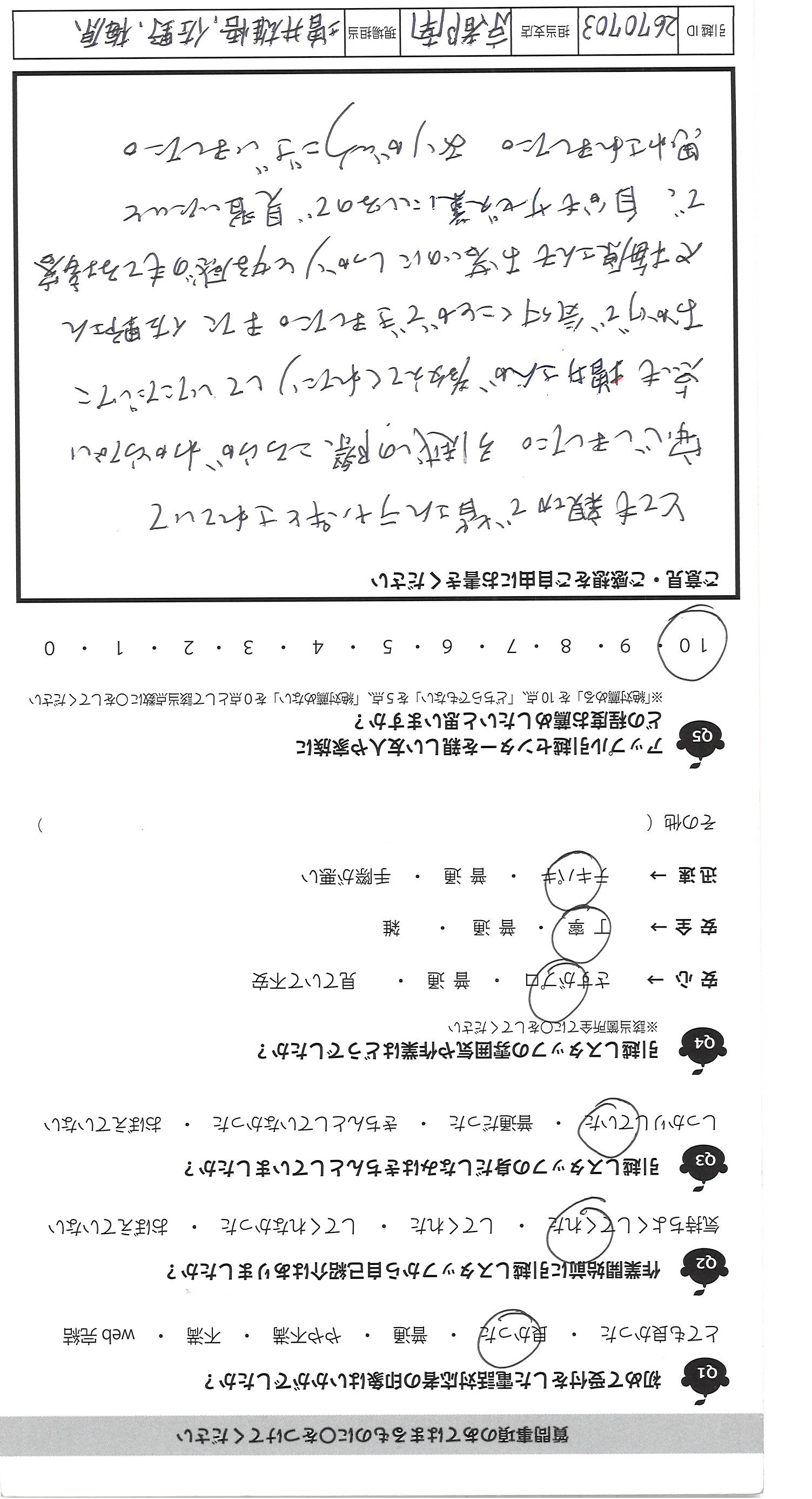 A.・見積もりがweb完結したのがとても便利でよかったです。 ・当日対応いただいた中川さんの印象がとてもよかったです。ふんいき、対応 ・首都圏の引っこしなら次回もお願いします。 ・一点だけ、このアンケート用紙の手触りがあまりよくないです。
