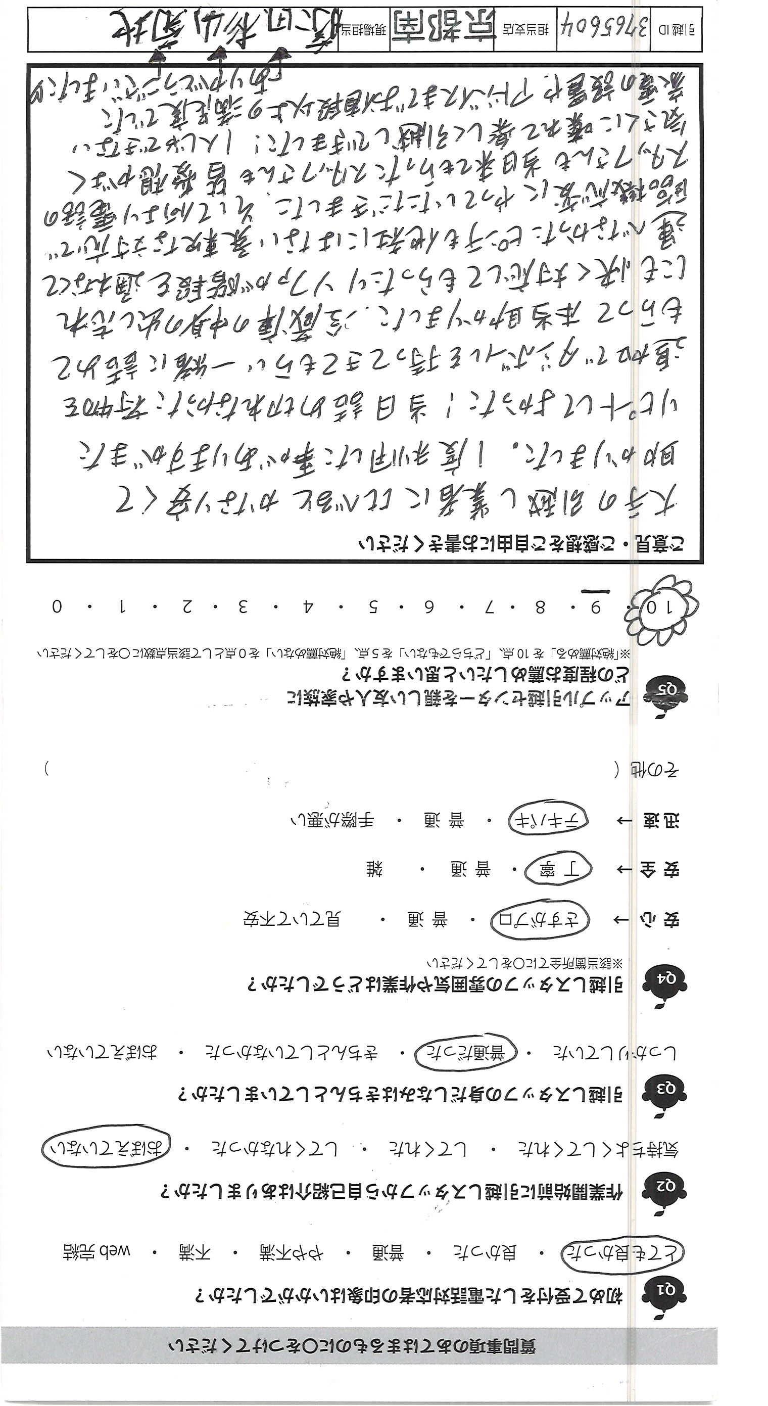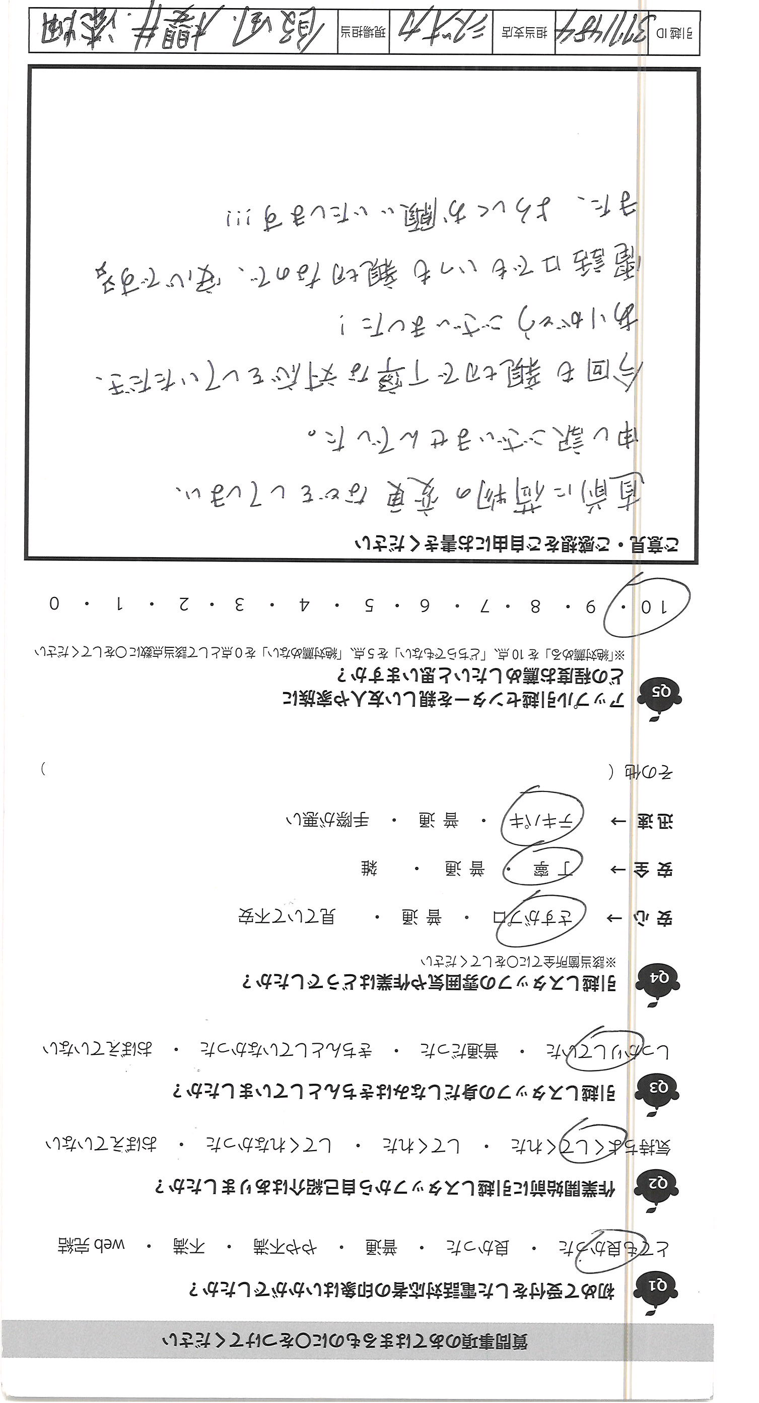 A.10/10とてもまんぞくています! 御社をオススメします ありがとうございます!(^_^)",30代前半,会社員(正社員・契約社員・派遣社員),女性,1,-,-,
