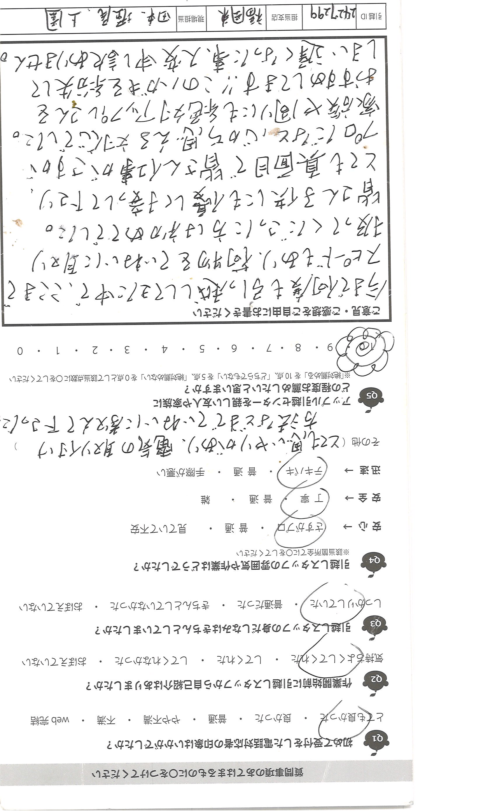A.(次回又お引越しする際にも貴社にお願いしたいと思います。) 過去に引越しは何度かしており、他社を利用しましたが スタッフ同志が仲が悪かったり言葉遣いが悪かったりして 気持ち良く終わることが出来ませんでした。今回業者 いっせい見積もりをして安いところは他にもありましたが 貴社のクチコミが一番良かったこと、web上でご連絡が ほぼ完結することなどがとても良く貴社にお願いいたし ました。当日はお若い方の方がほぼお一人で運び出して いらっしゃいましたので心配になりましたが先輩の方と役割 分担をされていらっしゃったのだろうと思います。エレベーター 無しの物件から同じくエレベーター無しの物件でのお引越 しをテキパキと進めてくださいました。本当にありがとうございました。