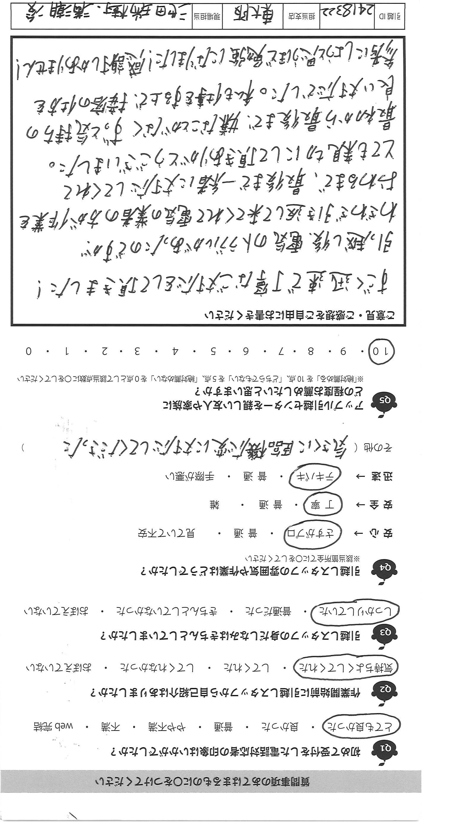 A.とても親切で、丁寧に対応して くれ、良かったです。 米谷さん、若いのに、がんばって 感心しました。又何か 必要になった時、お願い したいと思います。