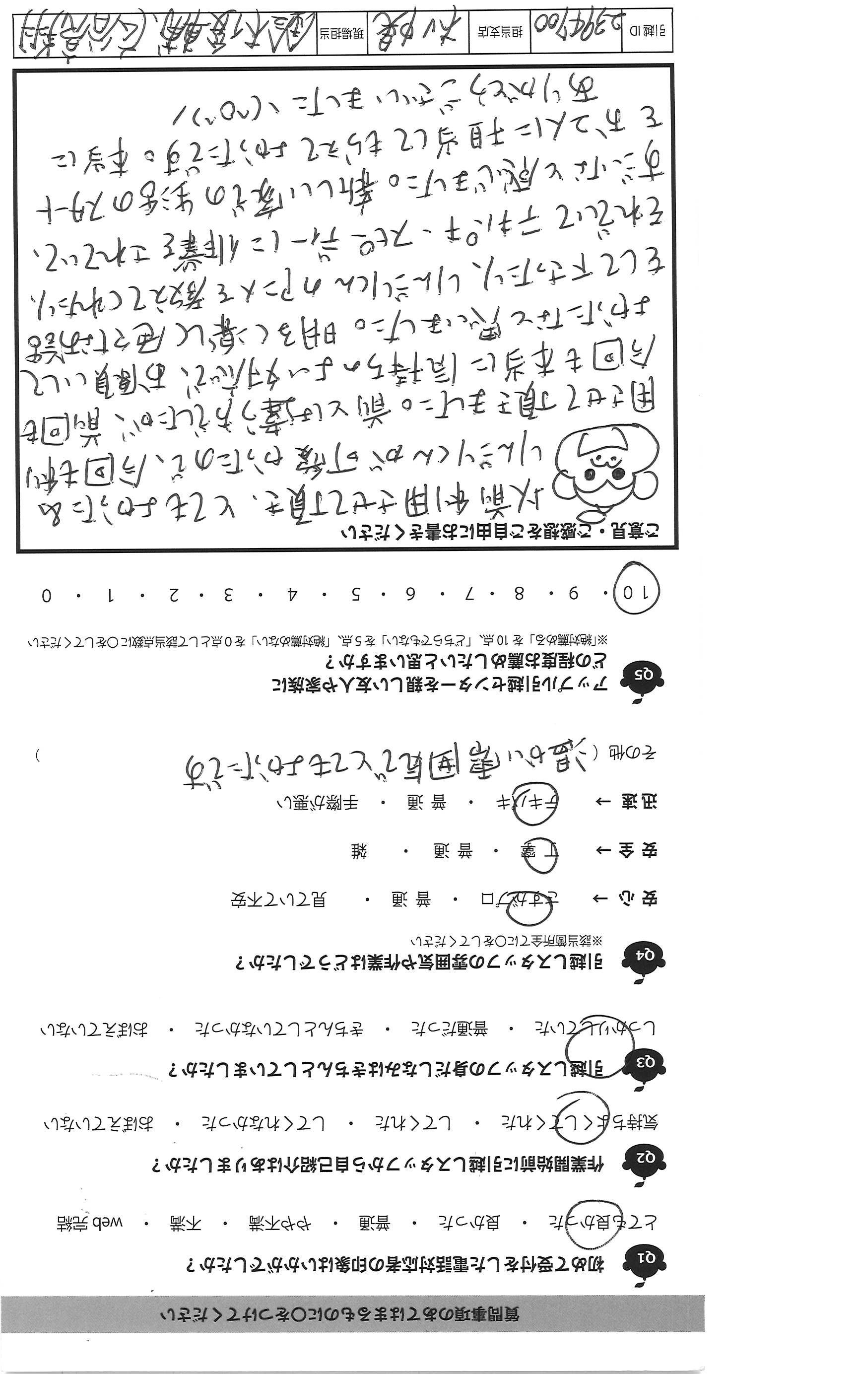 A.テキパキと長時間効率よく 進めていただきありがとうございました。 次回も宜しくお願いします。 頑張って下さい!!