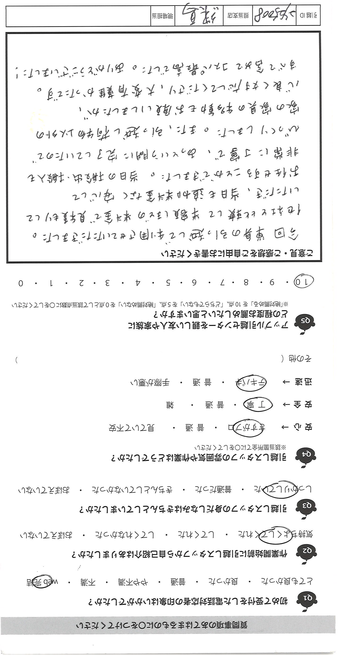 A.思っていた時間よりも早く終わり 本当に助かりました。 ありがとうございました。 配置にも、とてもご配慮して頂きました。 ご丁寧な対応にとても満足しています。