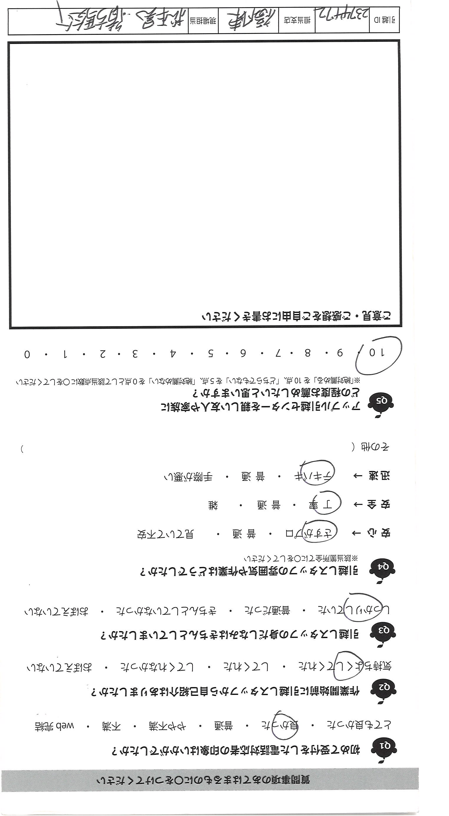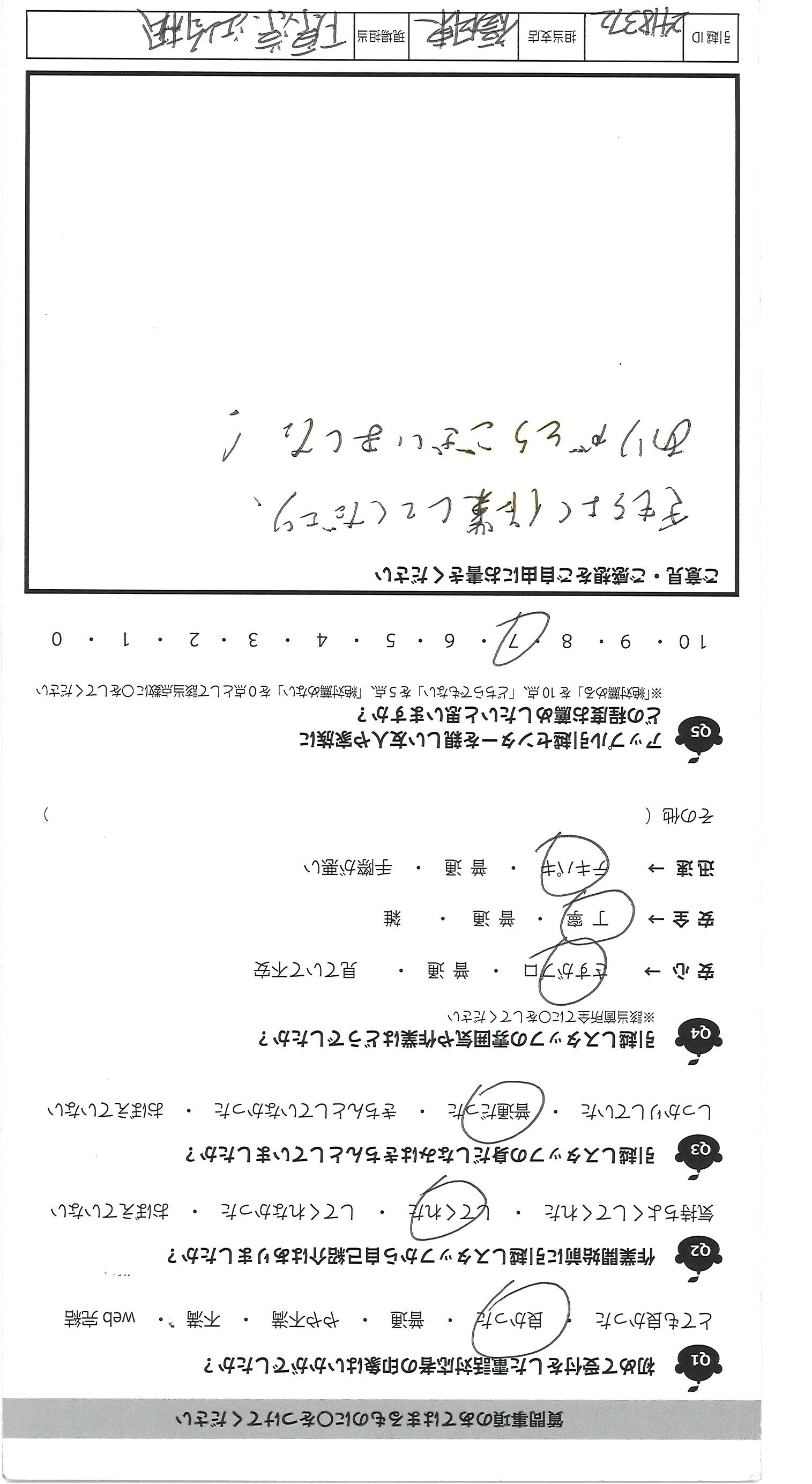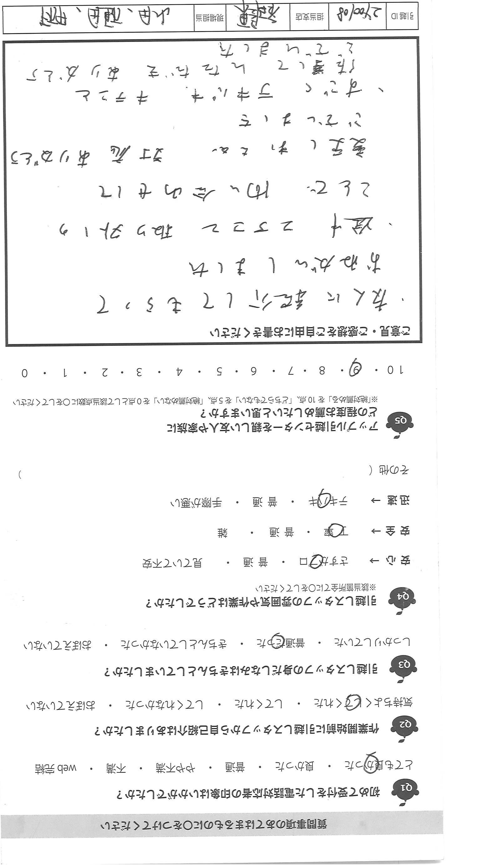 A.大変失礼ですが、始め聞いた事のない会社でしたが、見積りの 段階でリモートでしてくれたのが大手と御社の2社、これも企業努力 だと思いました。見積り内容も詳しく分かりやすく、少し不安もあり ましたが、依頼する事にしました。5年で3回引越しをしましたが、 「この箱、番号が書いてないのですが、どの部屋に運びますか?」とていねい に聞いて下さる所はなかったです。子供と一緒でしたが、人見知りの 3才の子供にもやさしく切して下さり、好印象でした。 中には見積りに来た人が片手で名紙を渡し、家に入ると「あと何社 見るのですが?うちで決めたら安くします」と特に見積りも出さず帰った 会社がありましたが、悪い印象でした。みなさん人が良さそうなので きっといい会社なのだと思いました。希望は食器等の梱包資材がもう 少しフカフカな物になる事と、担当の方の休息をもっとあげて ほしいです。(グッチっておられたわけではないです)