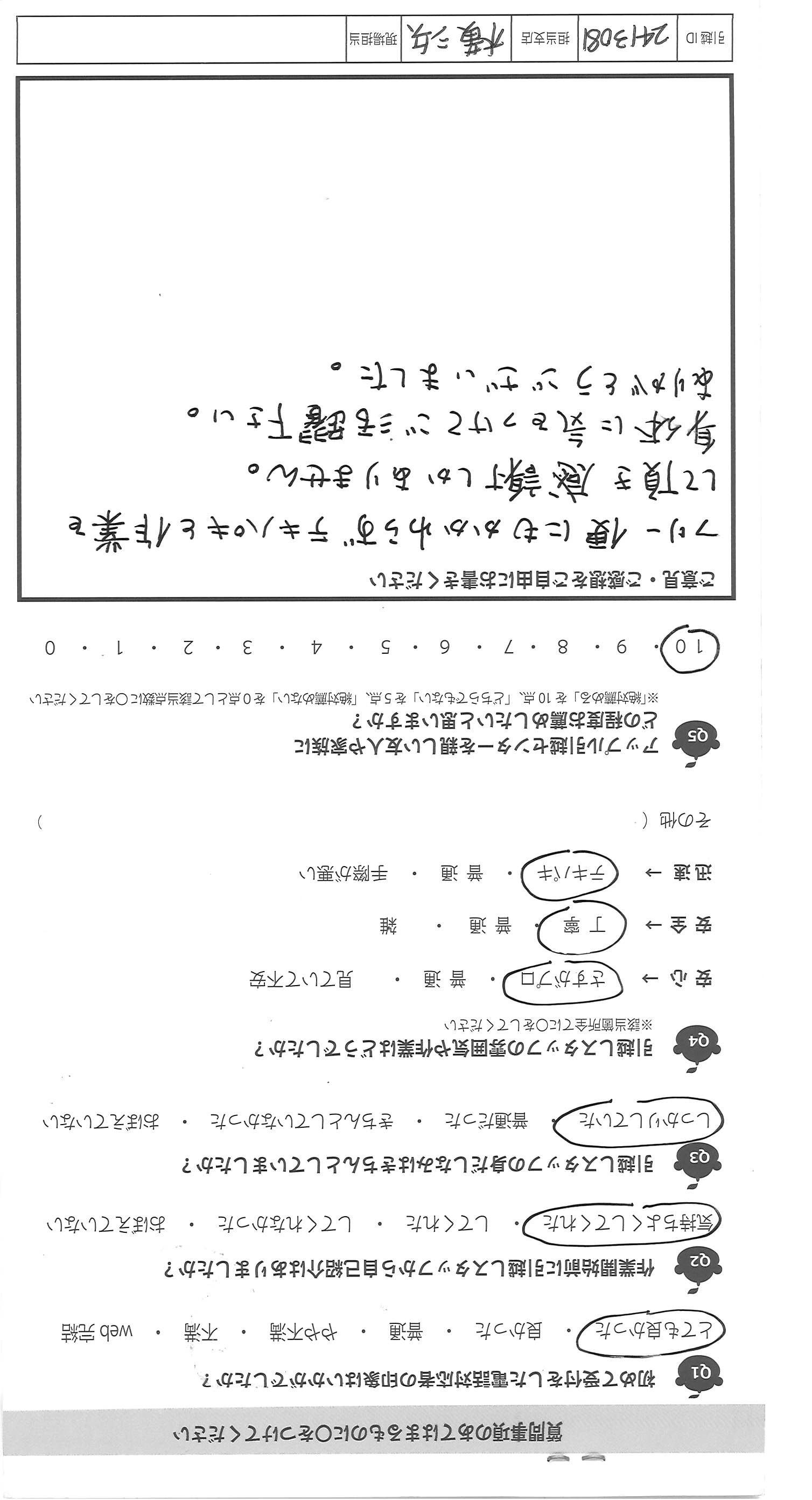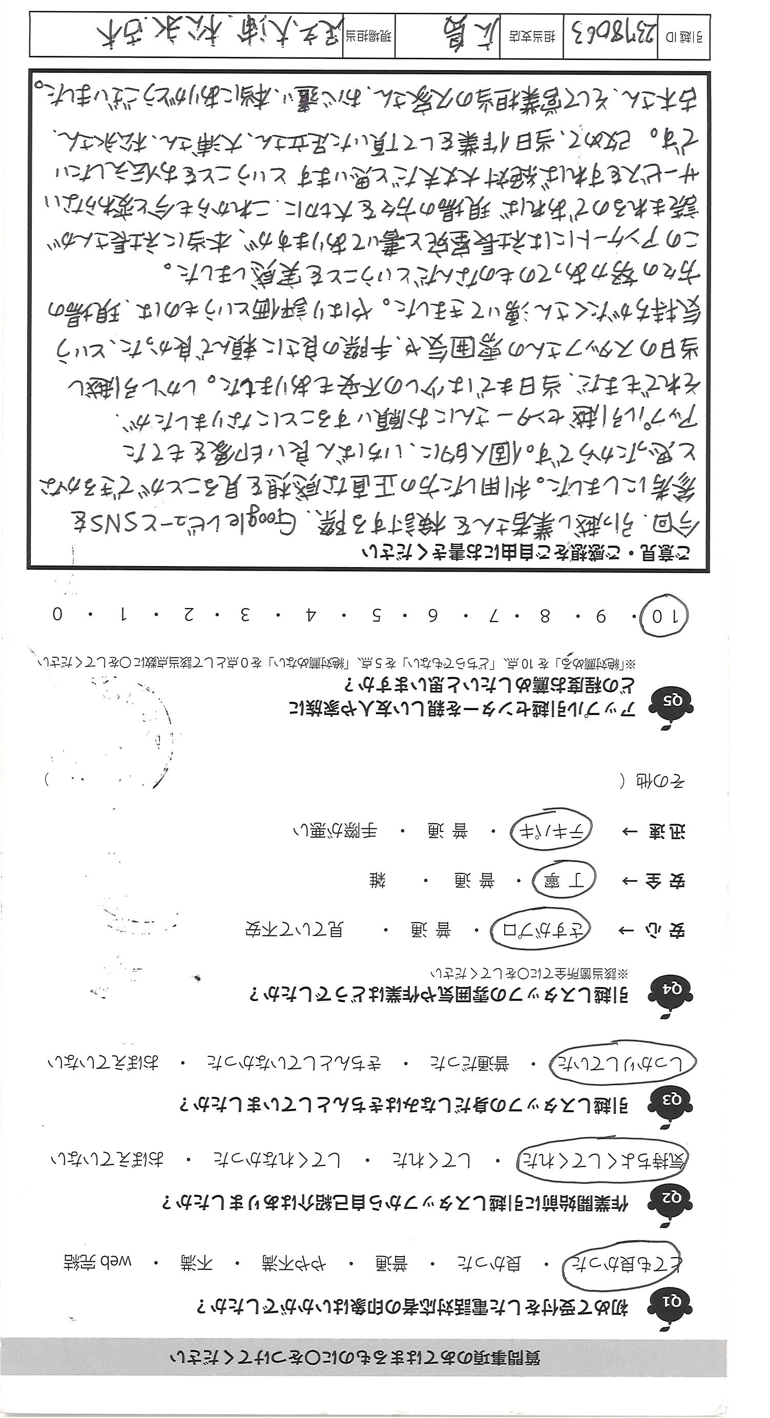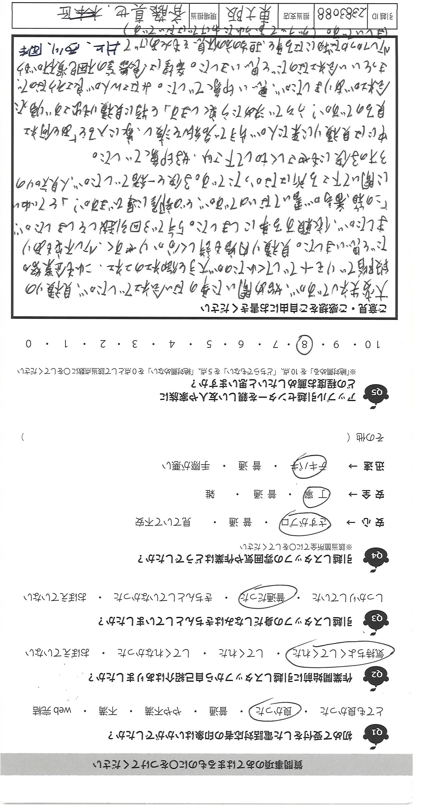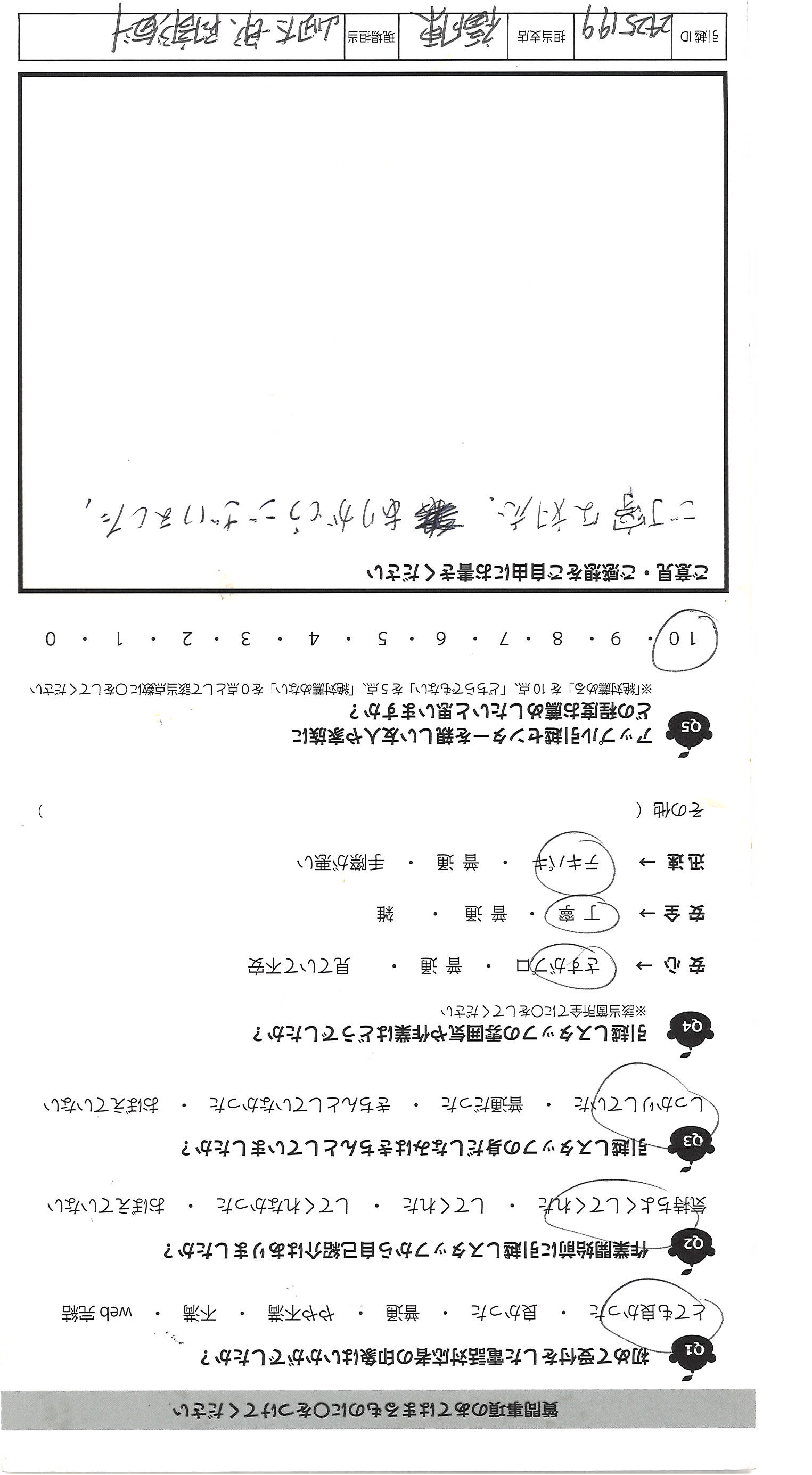 A.大変失礼ですが、始め聞いた事のない会社でしたが、見積りの 段階でリモートでしてくれたのが大手と御社の2社、これも企業努力 だと思いました。見積り内容も詳しく分かりやすく、少し不安もあり ましたが、依頼する事にしました。5年で3回引越しをしましたが、 「この箱、番号が書いてないのですが、どの部屋に運びますか?」とていねい に聞いて下さる所はなかったです。子供と一緒でしたが、人見知りの 3才の子供にもやさしく切して下さり、好印象でした。 中には見積りに来た人が片手で名紙を渡し、家に入ると「あと何社 見るのですが?うちで決めたら安くします」と特に見積りも出さず帰った 会社がありましたが、悪い印象でした。みなさん人が良さそうなので きっといい会社なのだと思いました。希望は食器等の梱包資材がもう 少しフカフカな物になる事と、担当の方の休息をもっとあげて ほしいです。(グッチっておられたわけではないです)