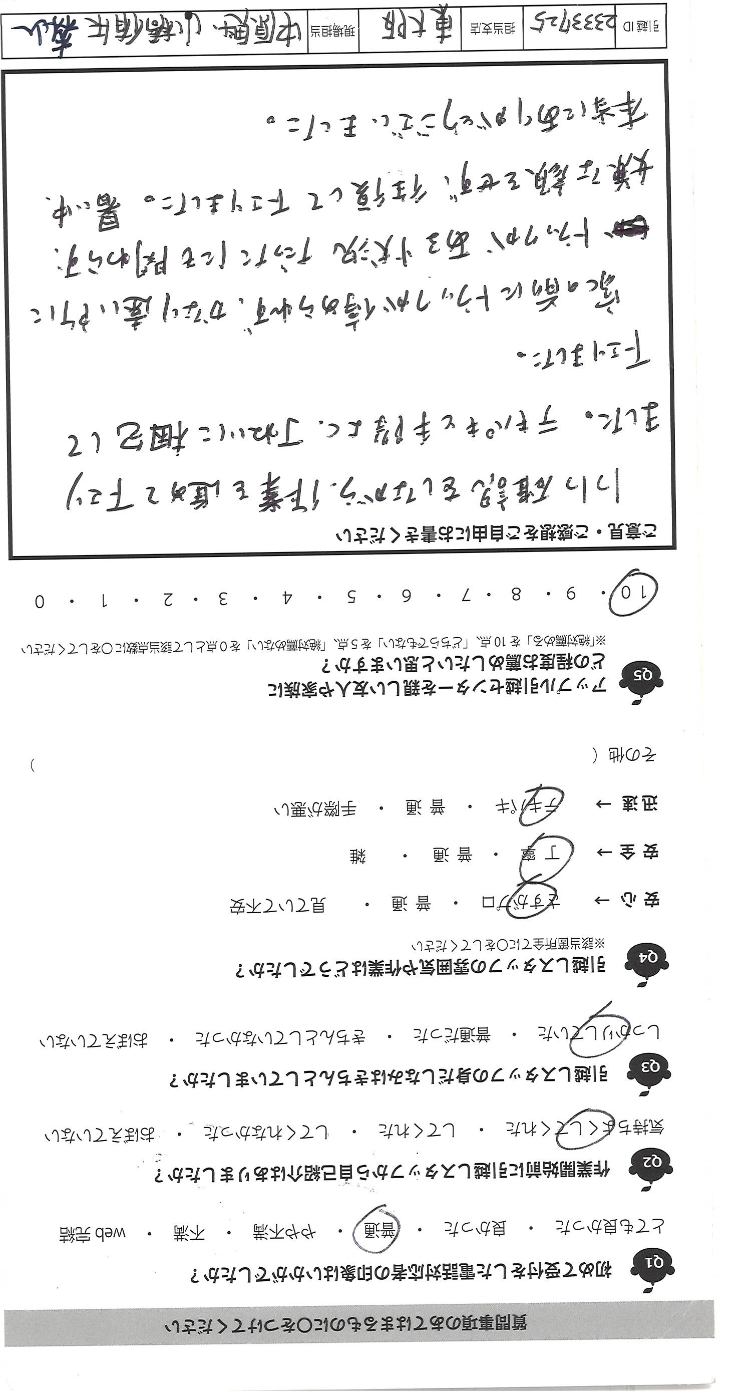 A.この度はお世話になりました。 お二人とも、キチンとした対応をしてくれて いたので、安心してお任せできました。 鈴木さんは、時折、いろんなお話してくれ たり、広谷さんも(きっと我が子と同じくらいかな 年齢が)笑顔がかわいくてこれからどんどん がんばっていてほしいです。 ありがとうございました。