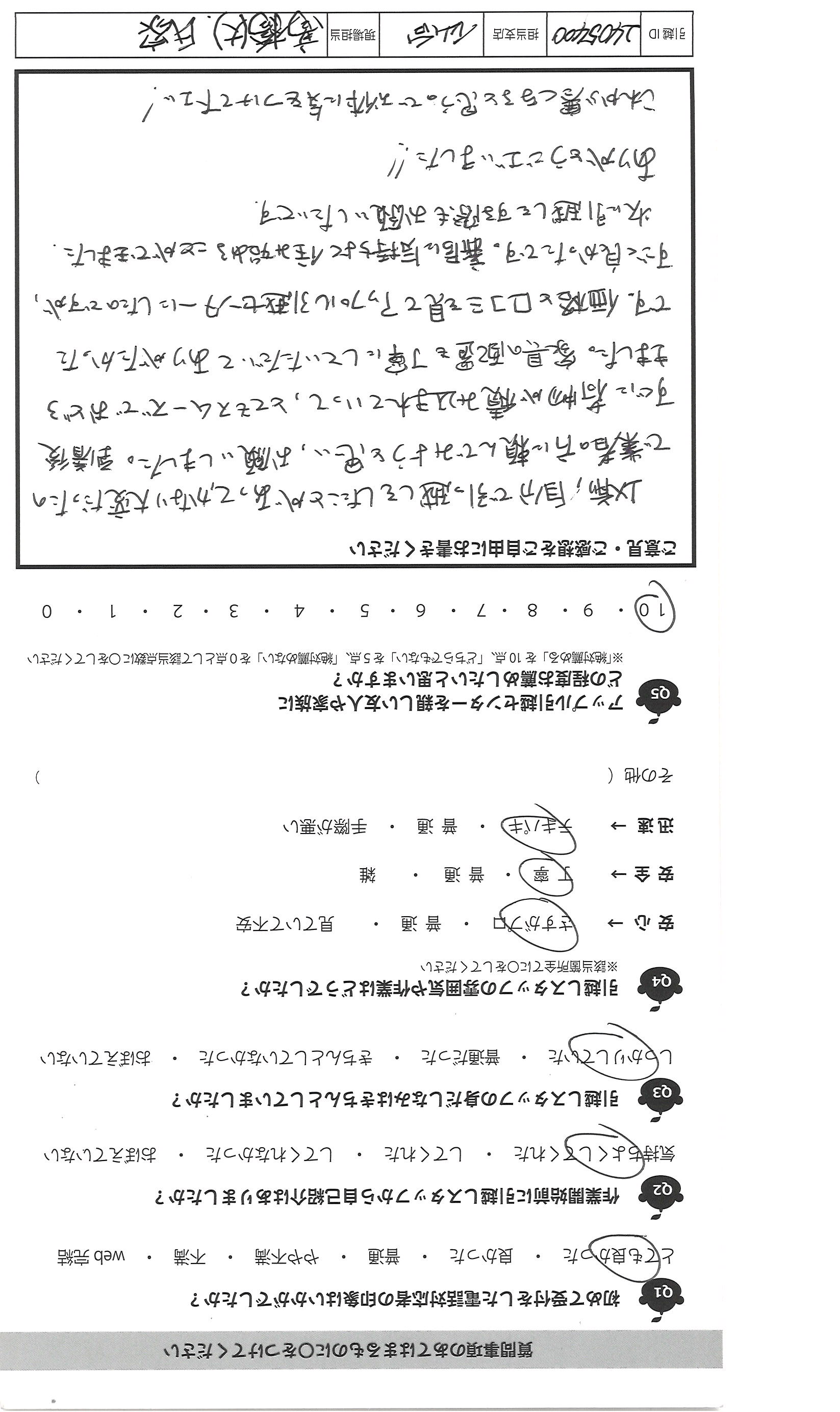A.ウェブでもすぐにアンケートさせて頂きましたが とても応対・接客が良かったので ハガキでも送付させて頂きました。 電話対応(女性フタッフヤエダ様)も気持ち が伝わる応対でしたし、当日のスタッフさん 足立様、吉田様もテキパキと応対して 下さり、親子共々感謝しております。 又の機会の時もよろしくお願いします。
