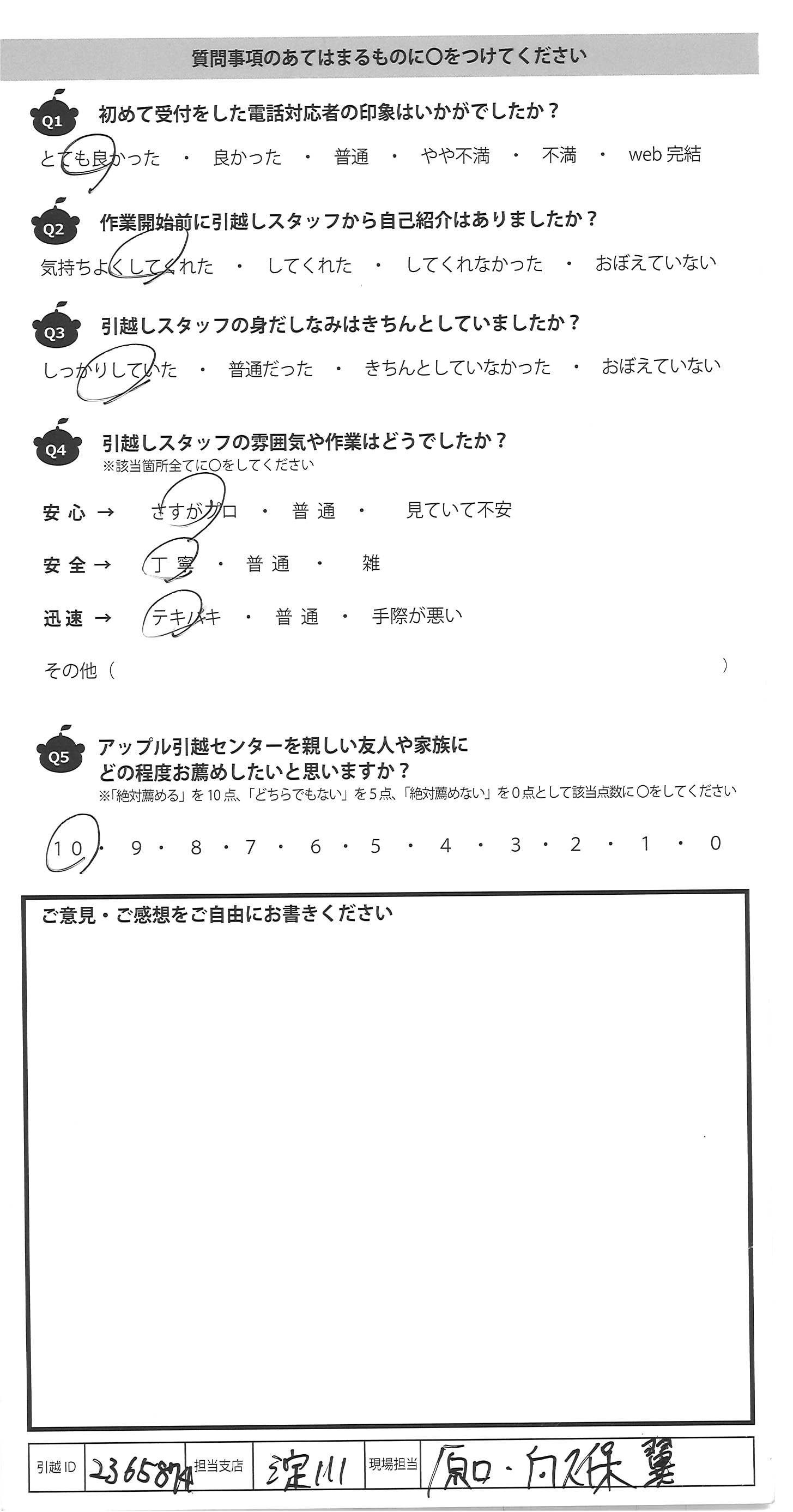 アップル引越センターでは、面映いお褒めの言葉も、胸に突き刺さるお叱りのコメントも、