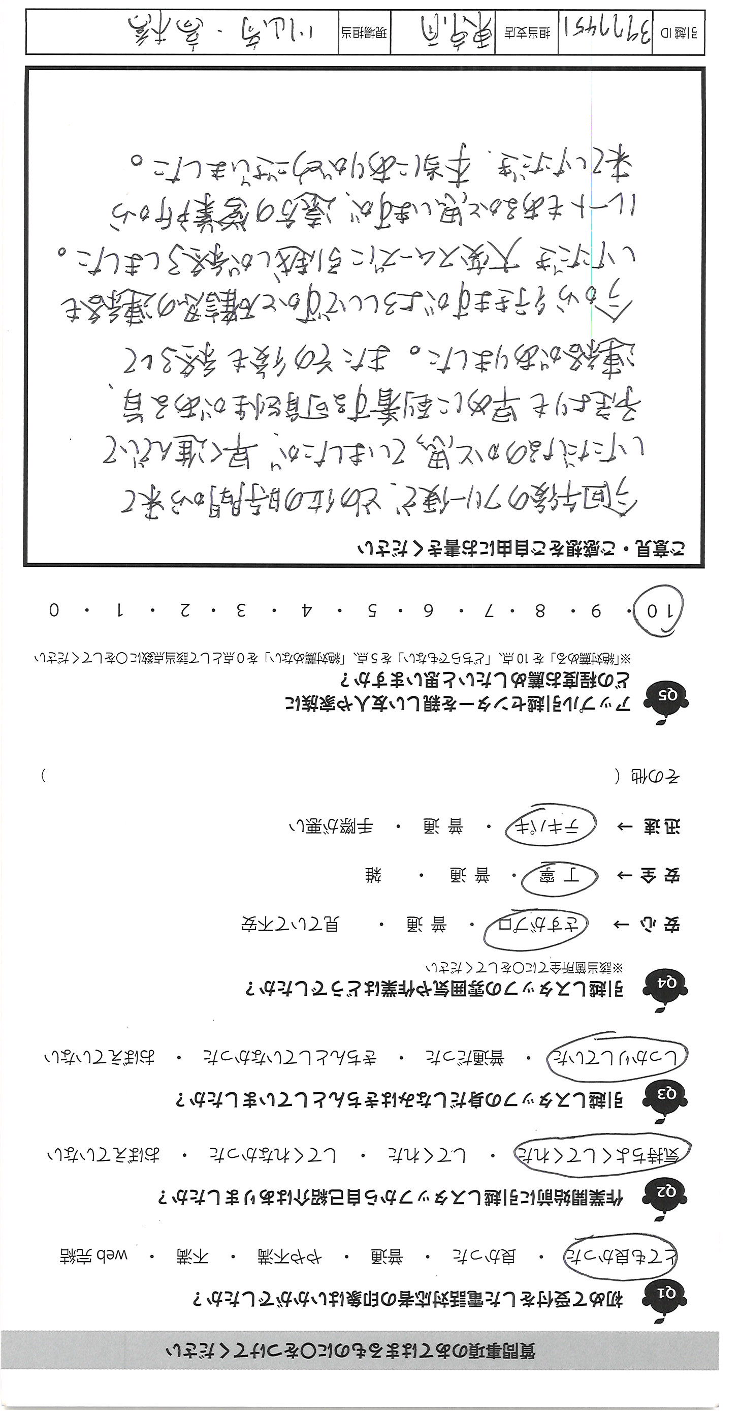 A.電話対応、作業スタッフの対応や人柄は好感が持てました 御社が発展いたしますことを祈ります。 ありがとうございました。