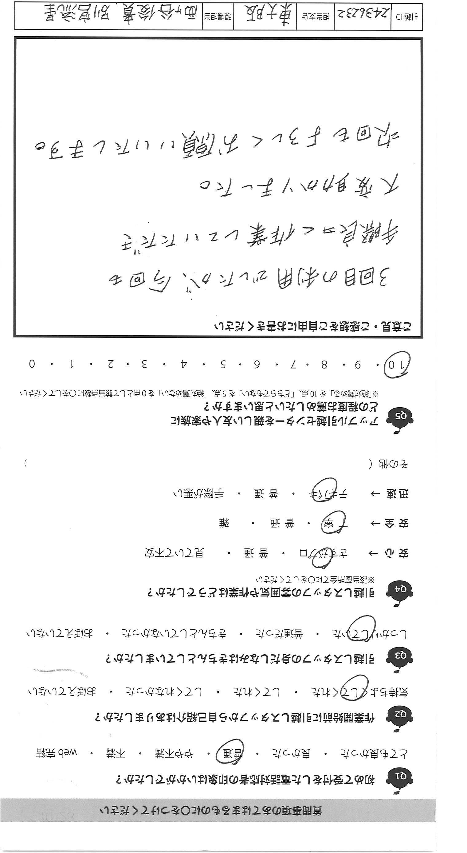 A.3回目の利用でしたが、今回も 手際良く作業していただき 大変助かりました。 次回もよろしくお願いいたします。