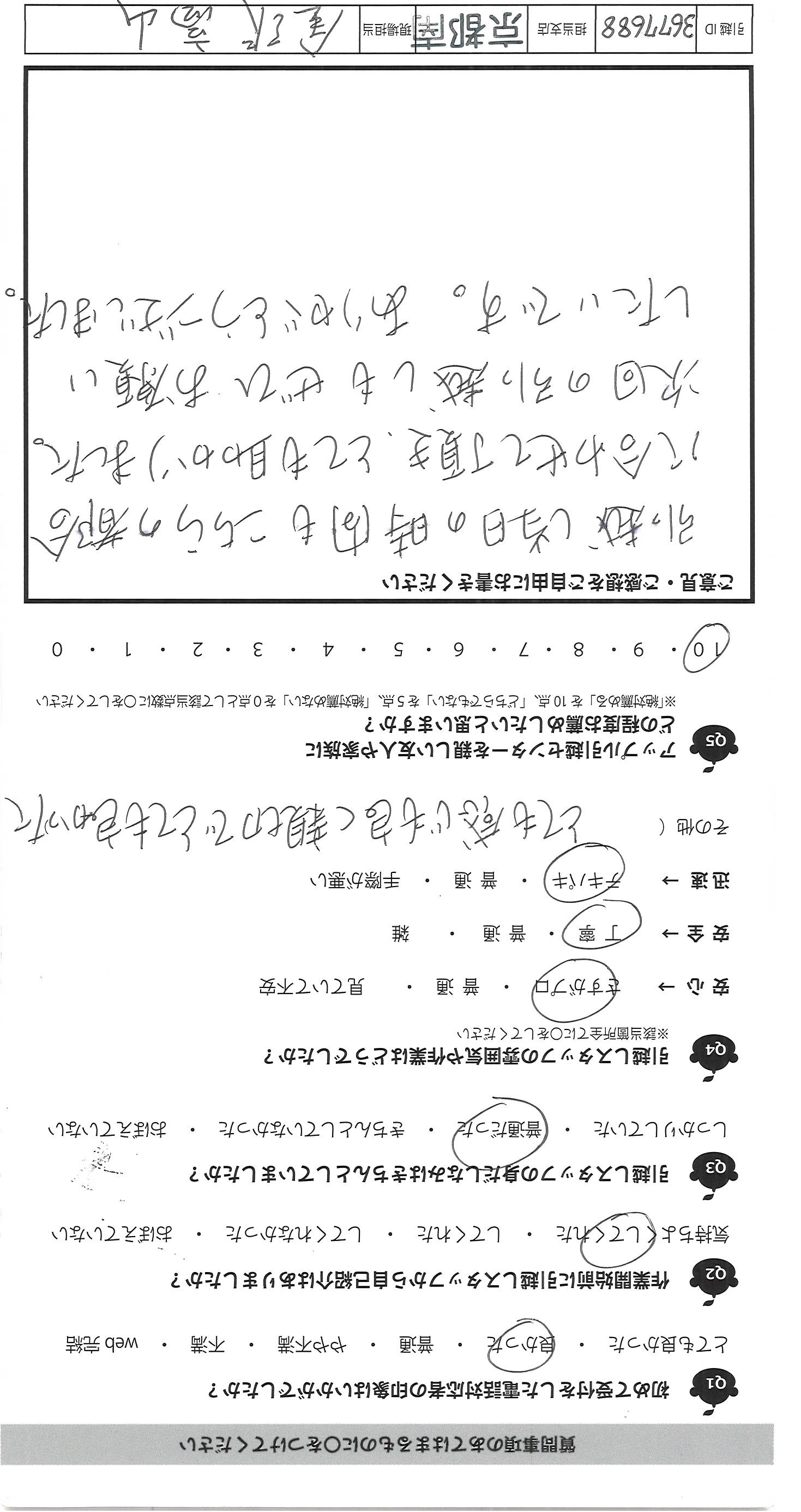 A.今回対応の方の仕事のスタイルは感心しました。 話しの聞き方、質問に対する回答etc。気持ち良く 安心して、まかせられました。 何事も100点は悪い、100点を付ければ、 それ以上の成長は無いむねの話をしました。 理解はして頂けたと思いますし、自身の部下 に引き抜ければと思う程で。今回は感謝です。