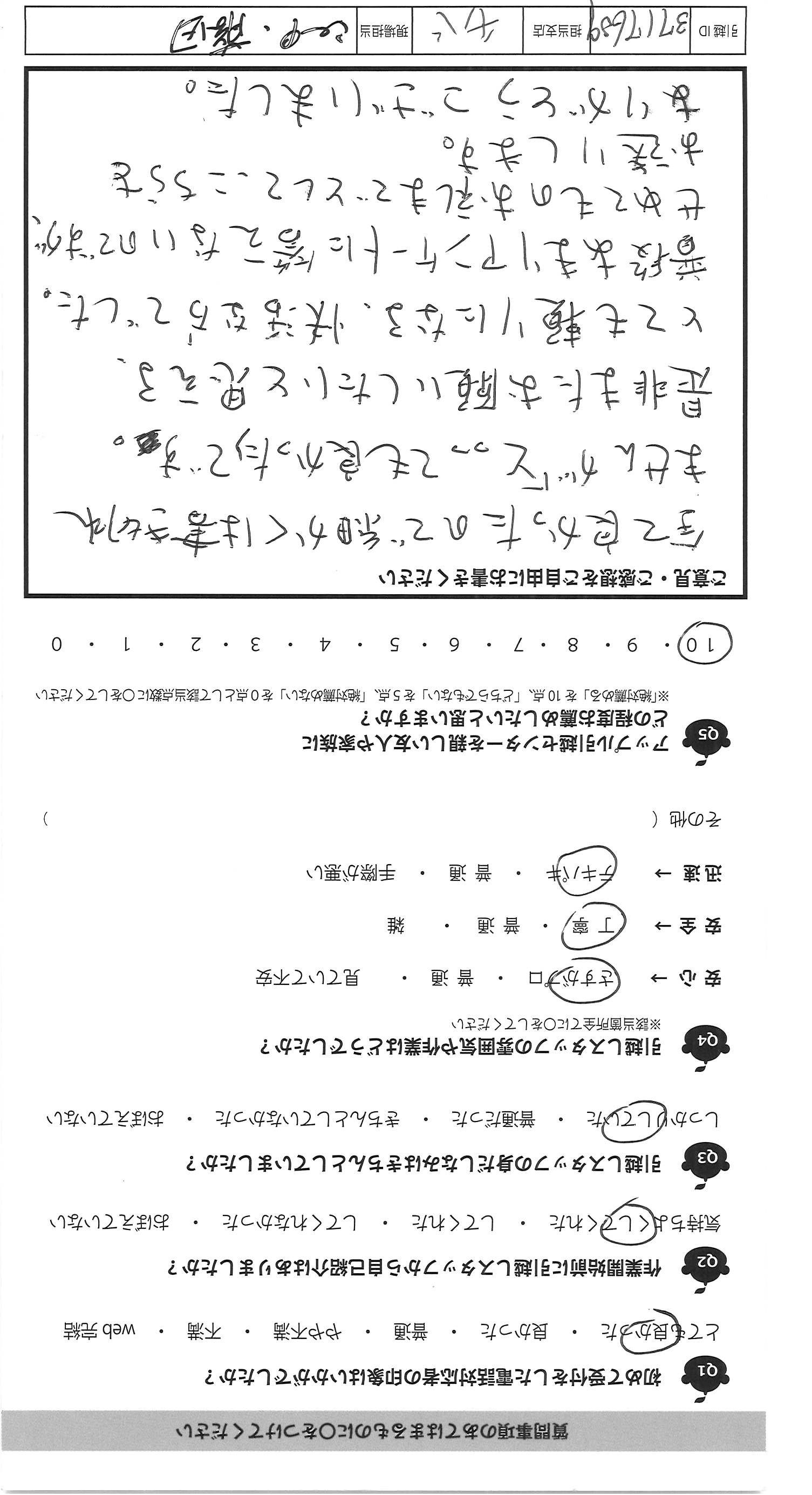 A.全て良かったので細かくは書き切れ ませんが「とっっても良かった」です。 是非またお願いしたいと思える、 とても頼りになる、快活な方でした。 普段あまりアンケートに答えないのですが、 せめてものお礼までとして、こちらを お送りします。 ありがとうございました。