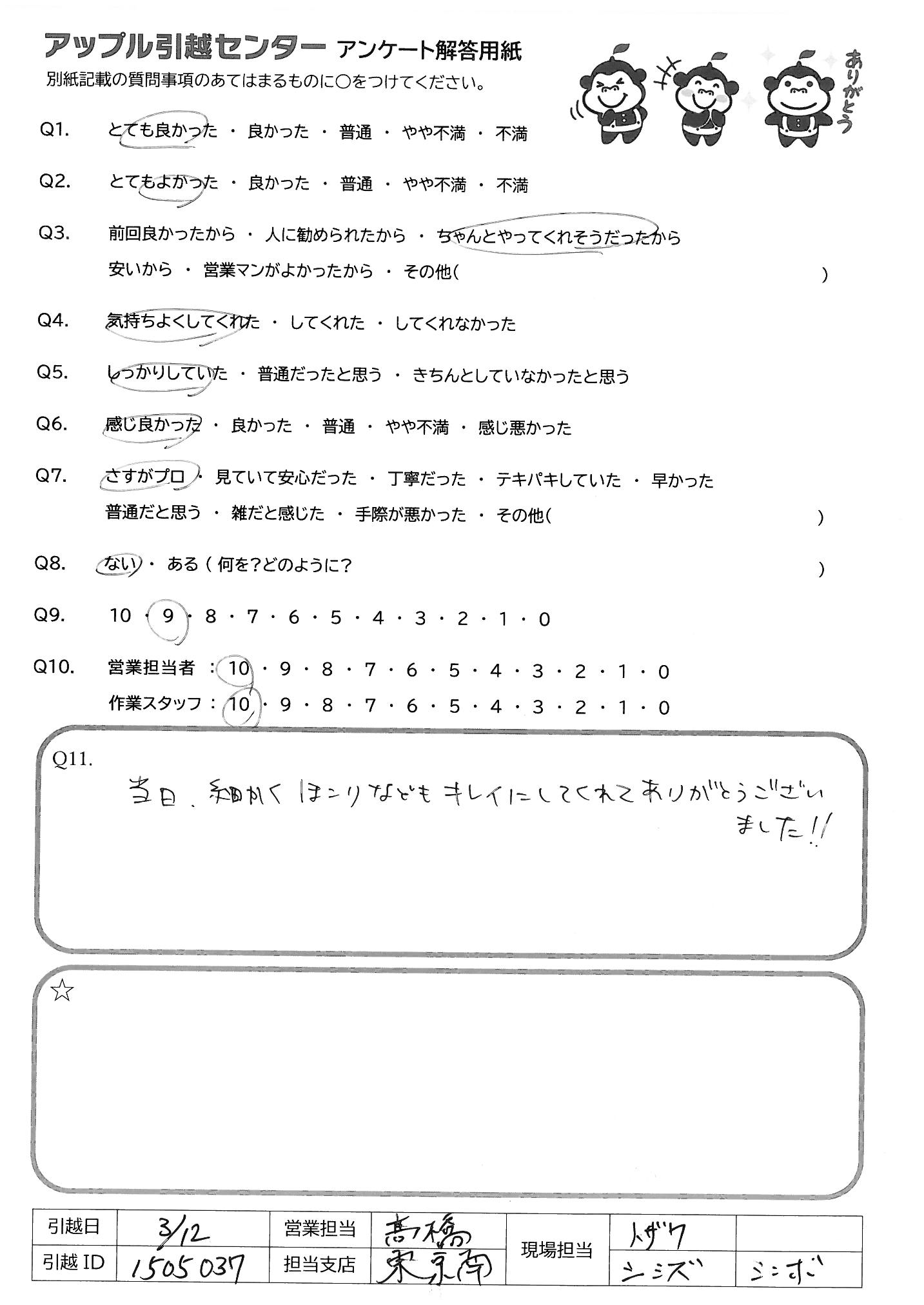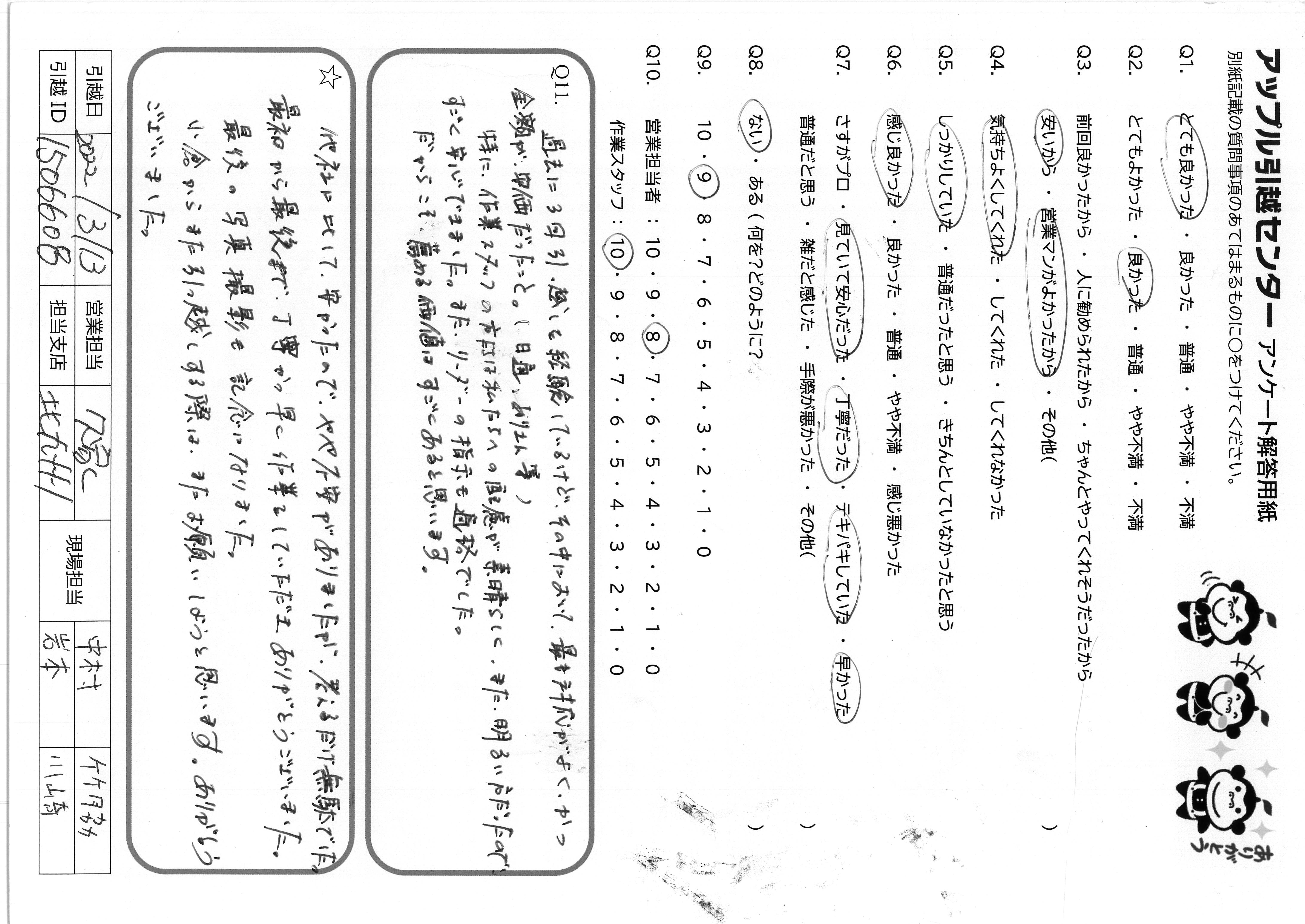 A.ありがとうございました とても満足です!今後もお願いします! ただ引越が大好きなんだ!!