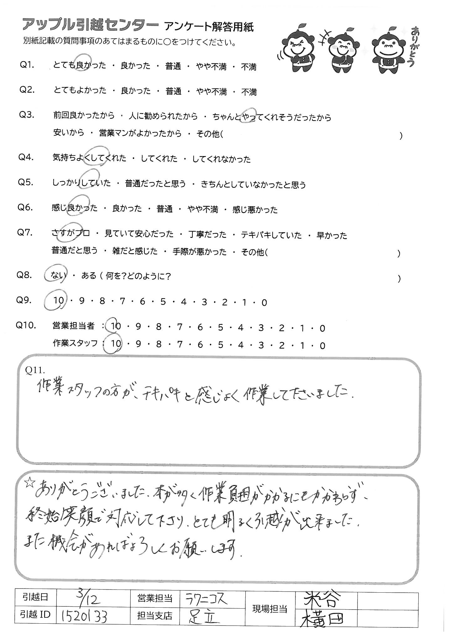 引越し日:2022年03月12日 エリア:神奈川県川崎市中原区