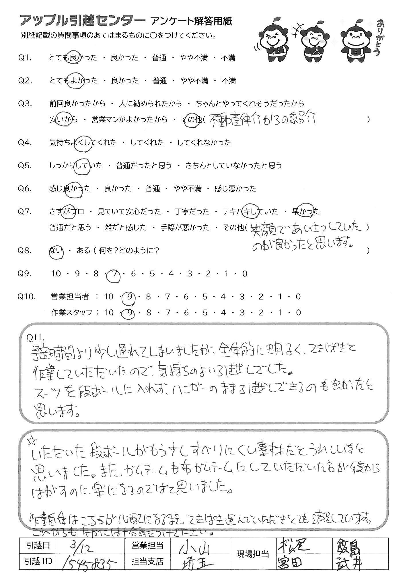 引越し日:2022年03月12日 エリア:埼玉県さいたま市浦和区