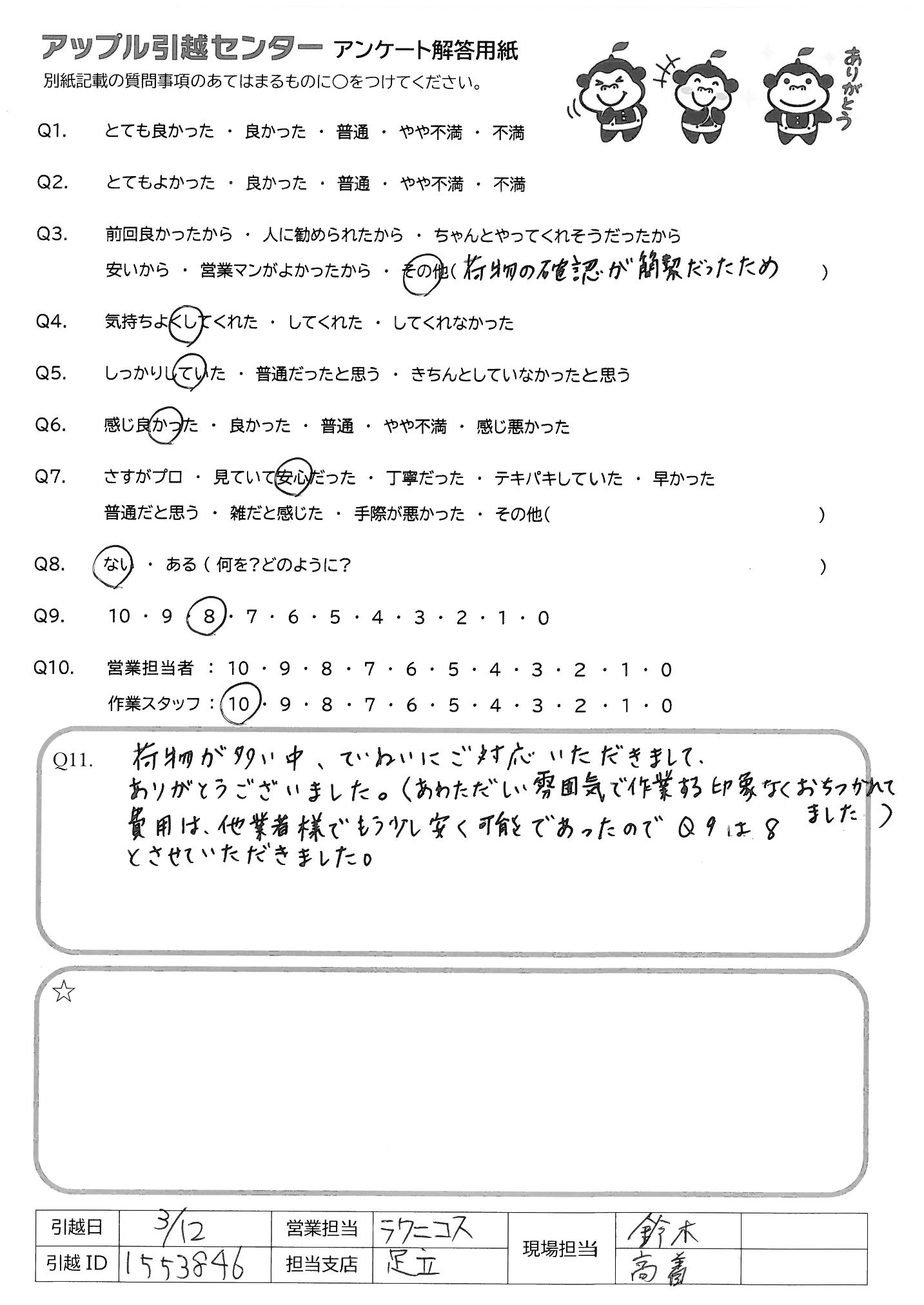 引越し日:2022年03月12日 エリア:埼玉県鶴ヶ島市