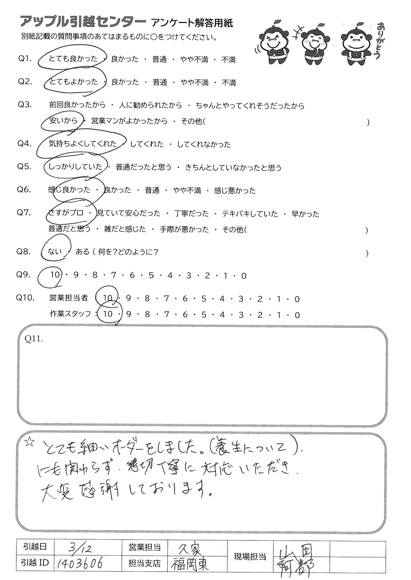 引越し日:2022年03月11日 エリア:福岡県福岡市博多区