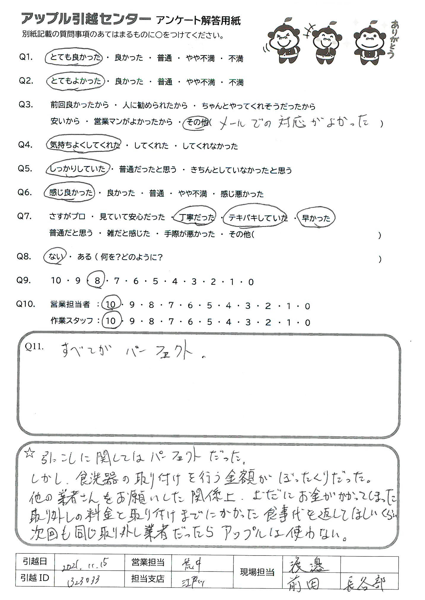 引越し日:2021年11月15日 エリア:東京都江戸川区