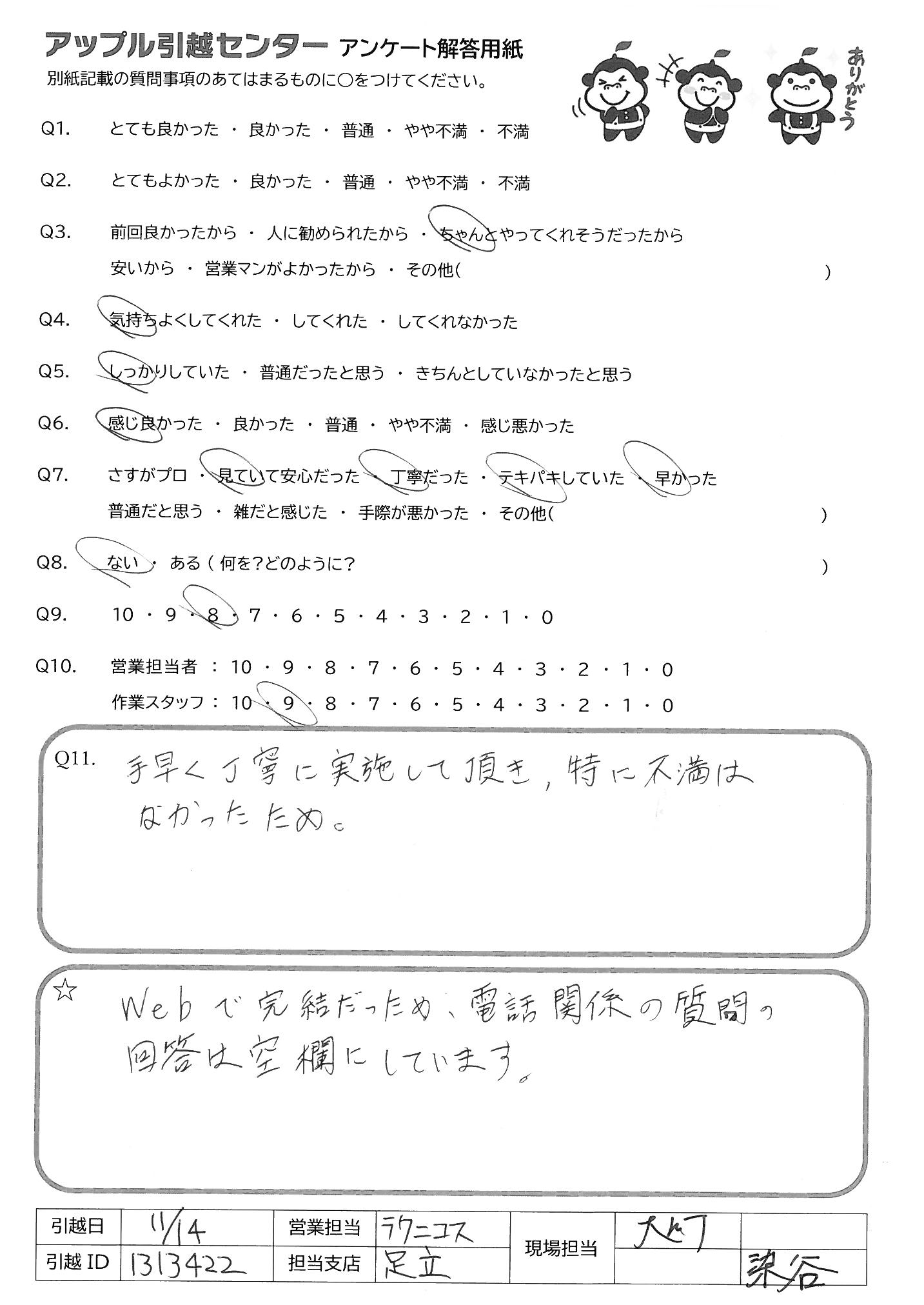 引越し日:2021年11月13日 エリア:東京都北区