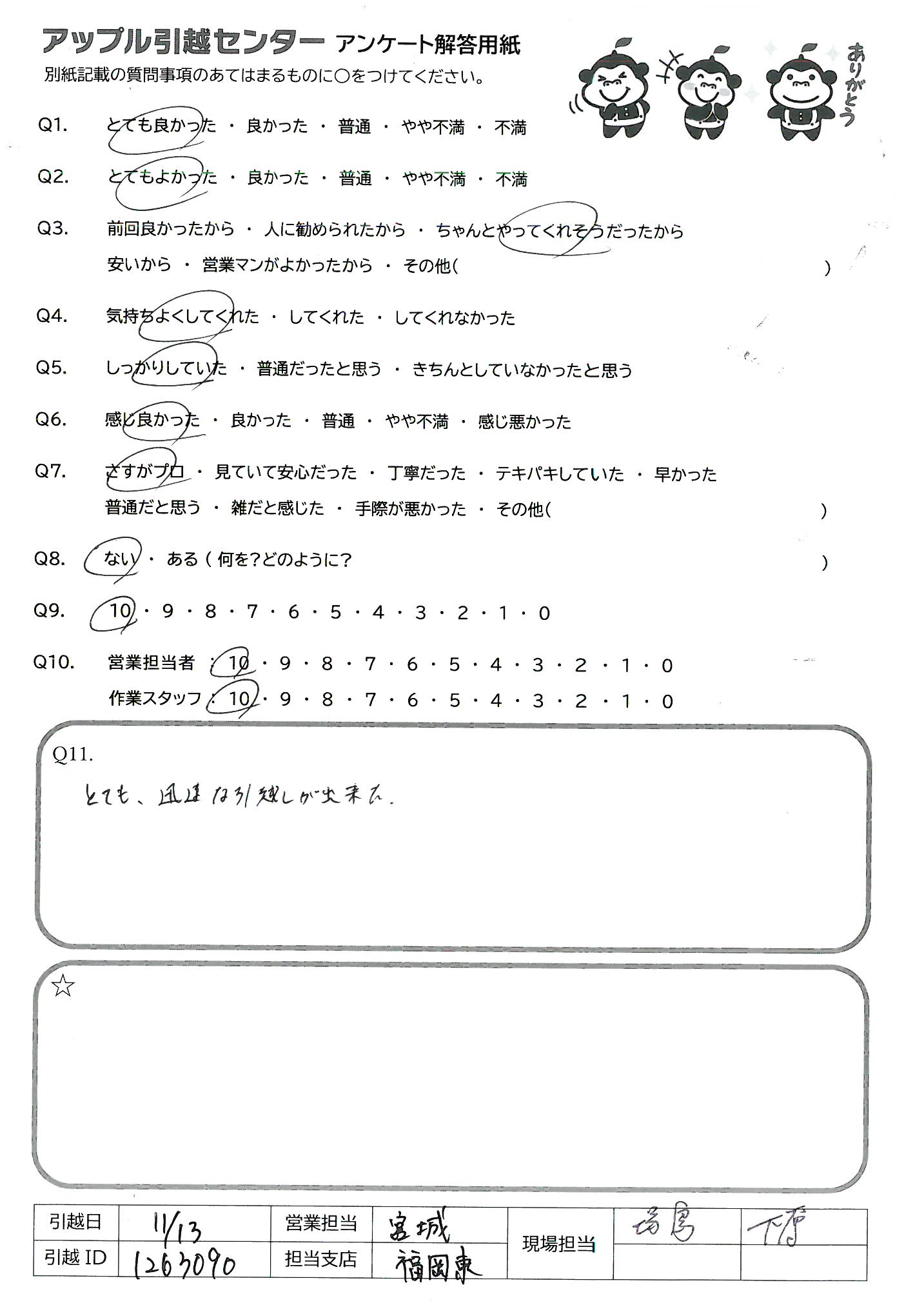 A.とても、迅速な引越しが出来た