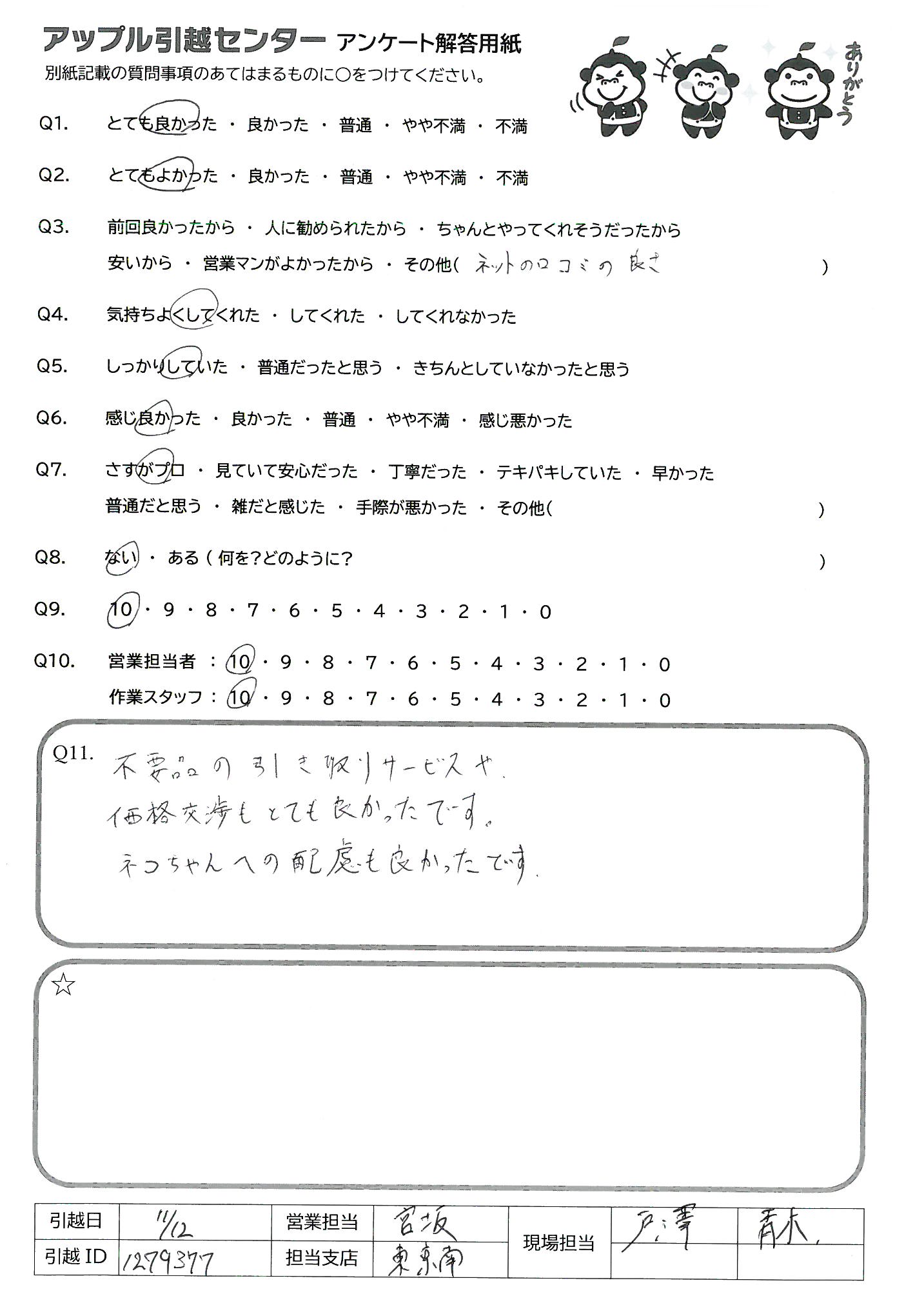 引越し日:2021年11月12日 エリア:東京都練馬区