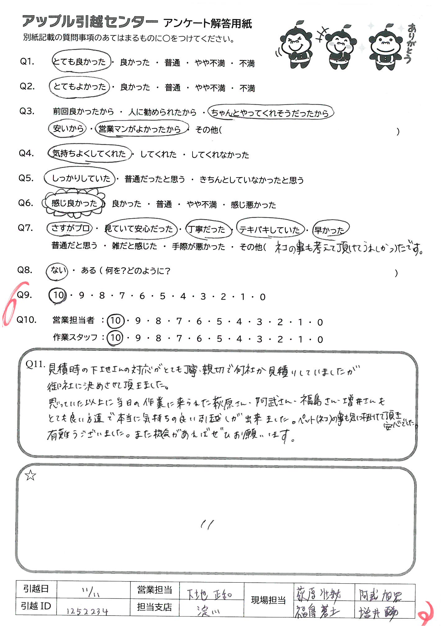 アップル引越センターでは、面映いお褒めの言葉も、胸に突き刺さるお叱りのコメントも、