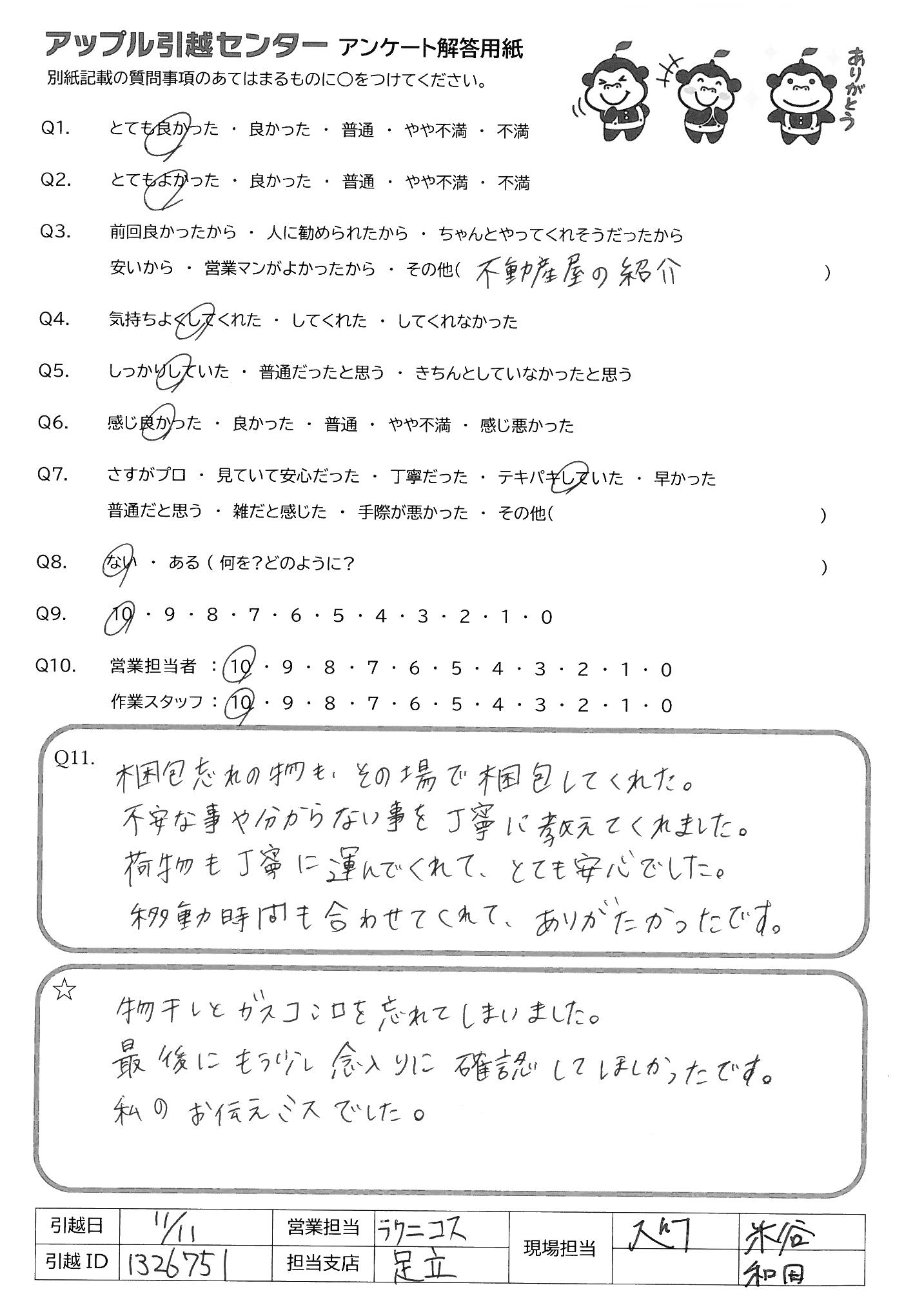 引越し日:2021年11月11日 エリア:東京都北区
