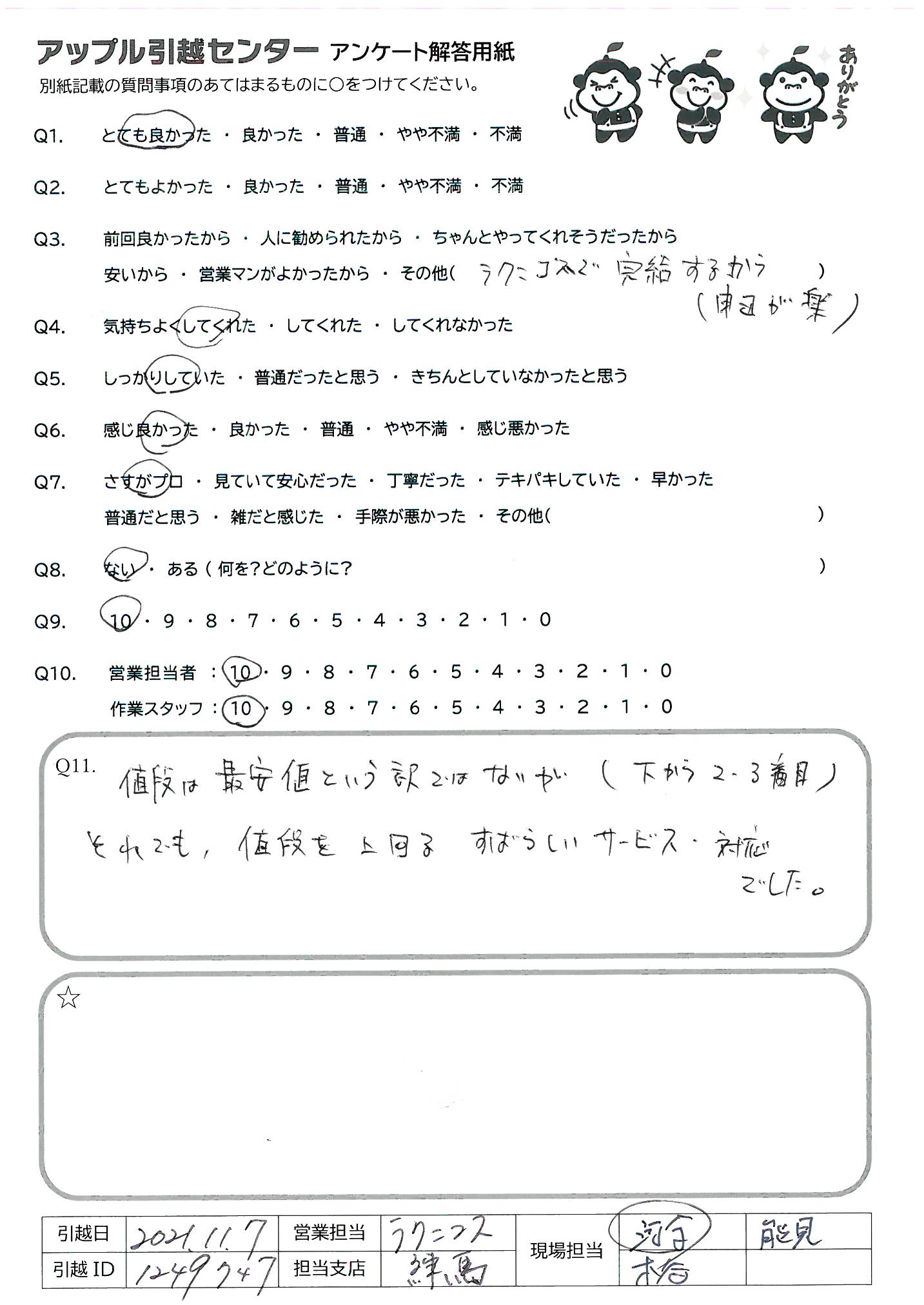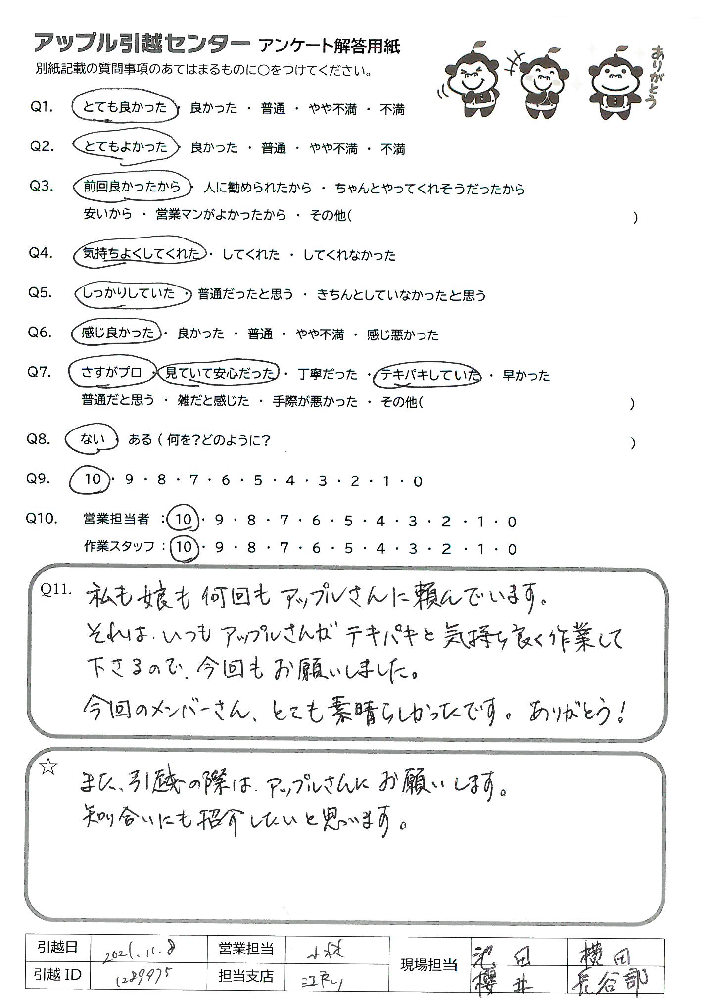 A.また、引越の際は、アップルさんにお願いします。 知り合いにも紹介したいと思います。