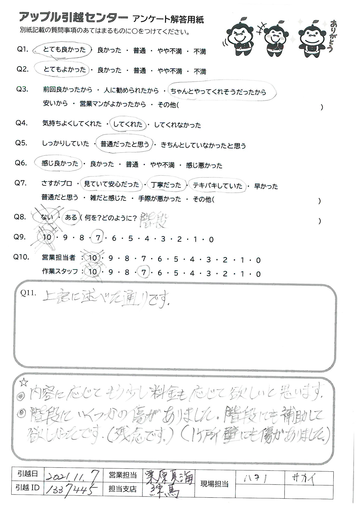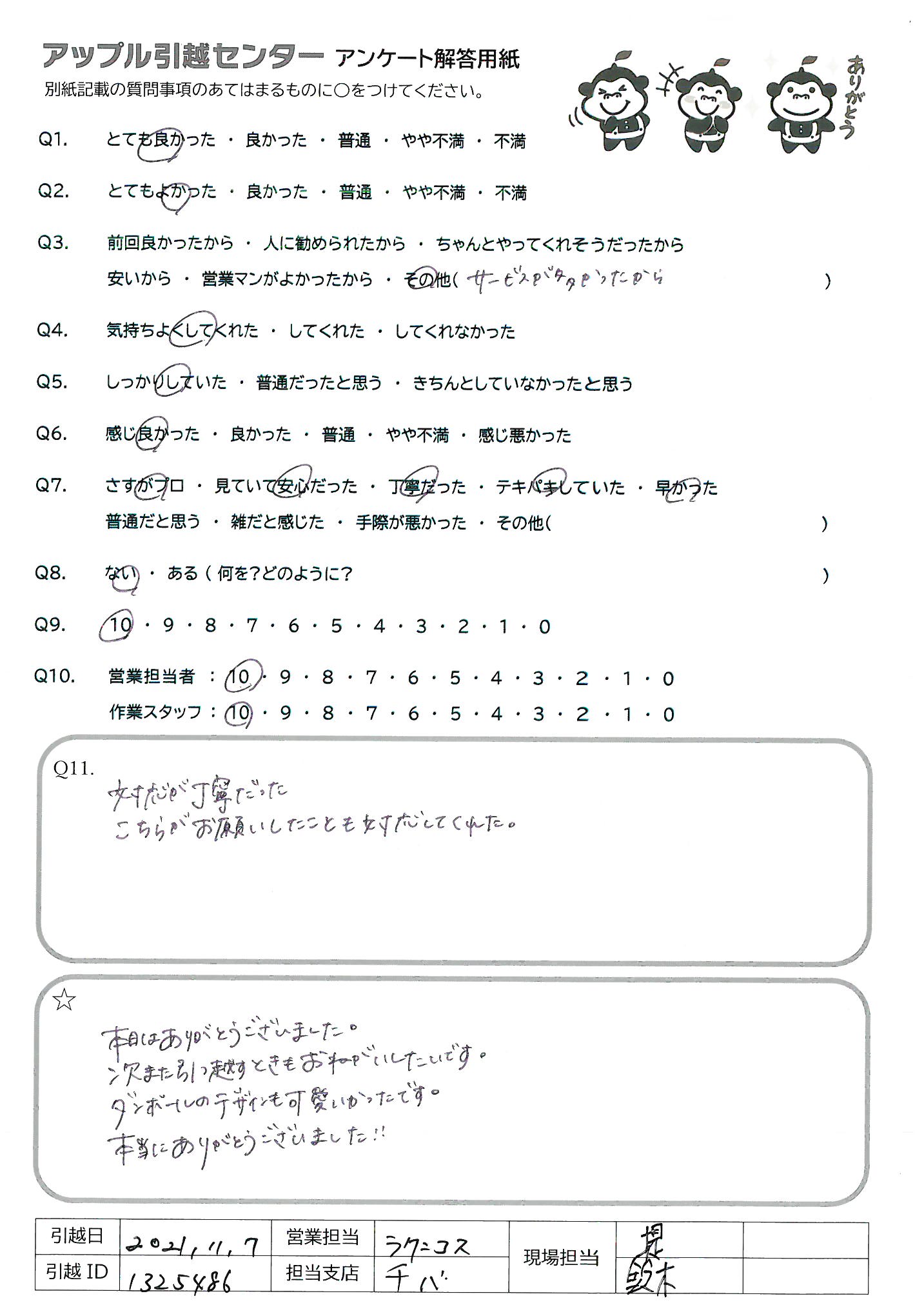 引越し日:2021年11月07日 エリア:--