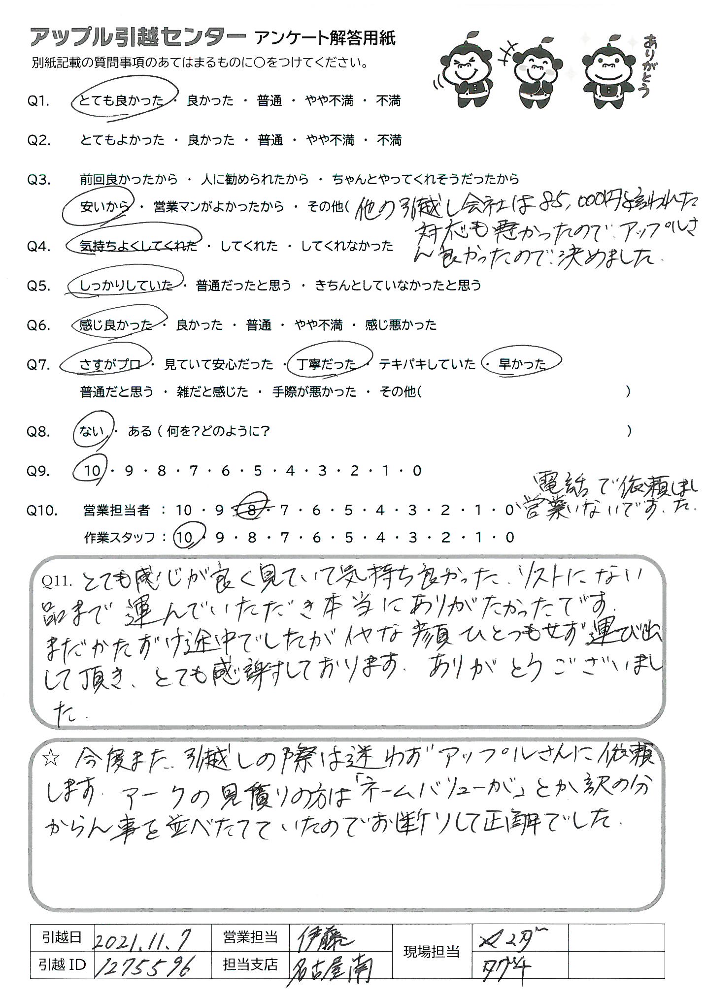 引越し日:2021年11月07日 エリア:愛知県岡崎市