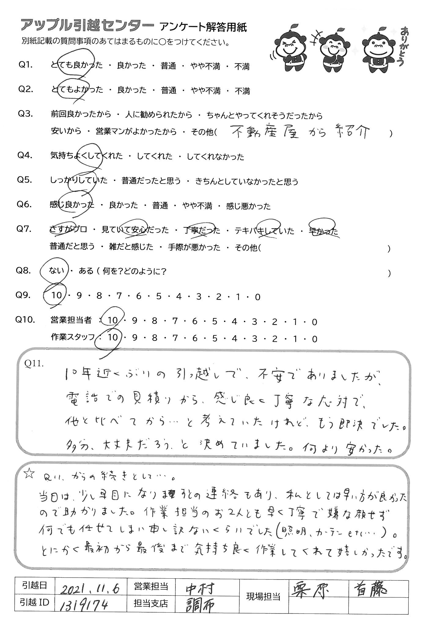 引越し日:2021年11月06日 エリア:千葉県浦安市