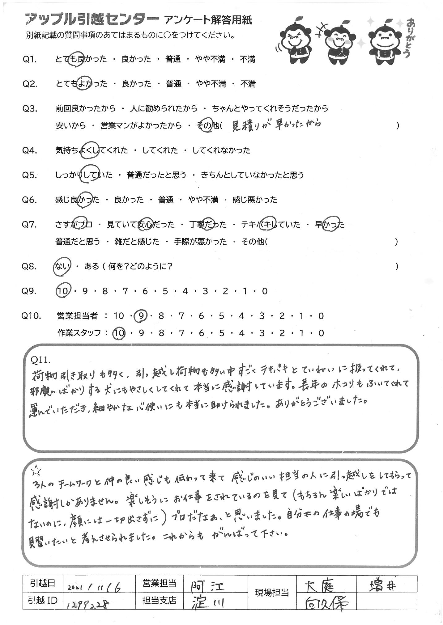 引越し日:2021年11月06日 エリア:大阪府大阪市淀川区