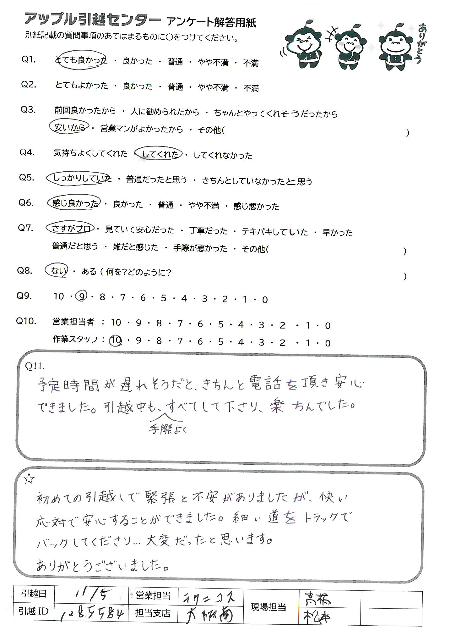 引越し日:2021年11月05日 エリア:大阪府堺市東区