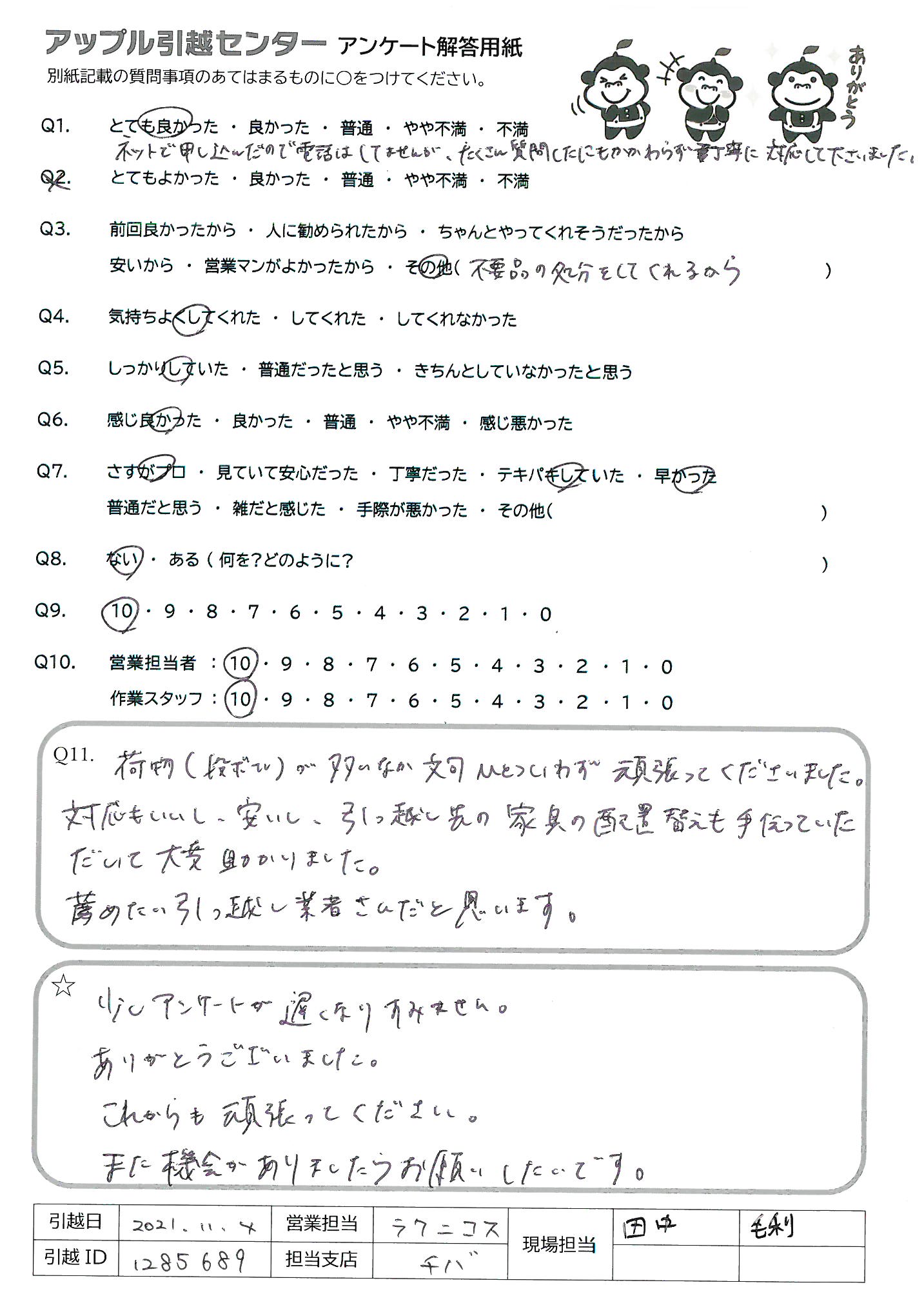 A.誰か引越の話がある時はアップルさんを紹介したいと思います。 ありがとうございました!