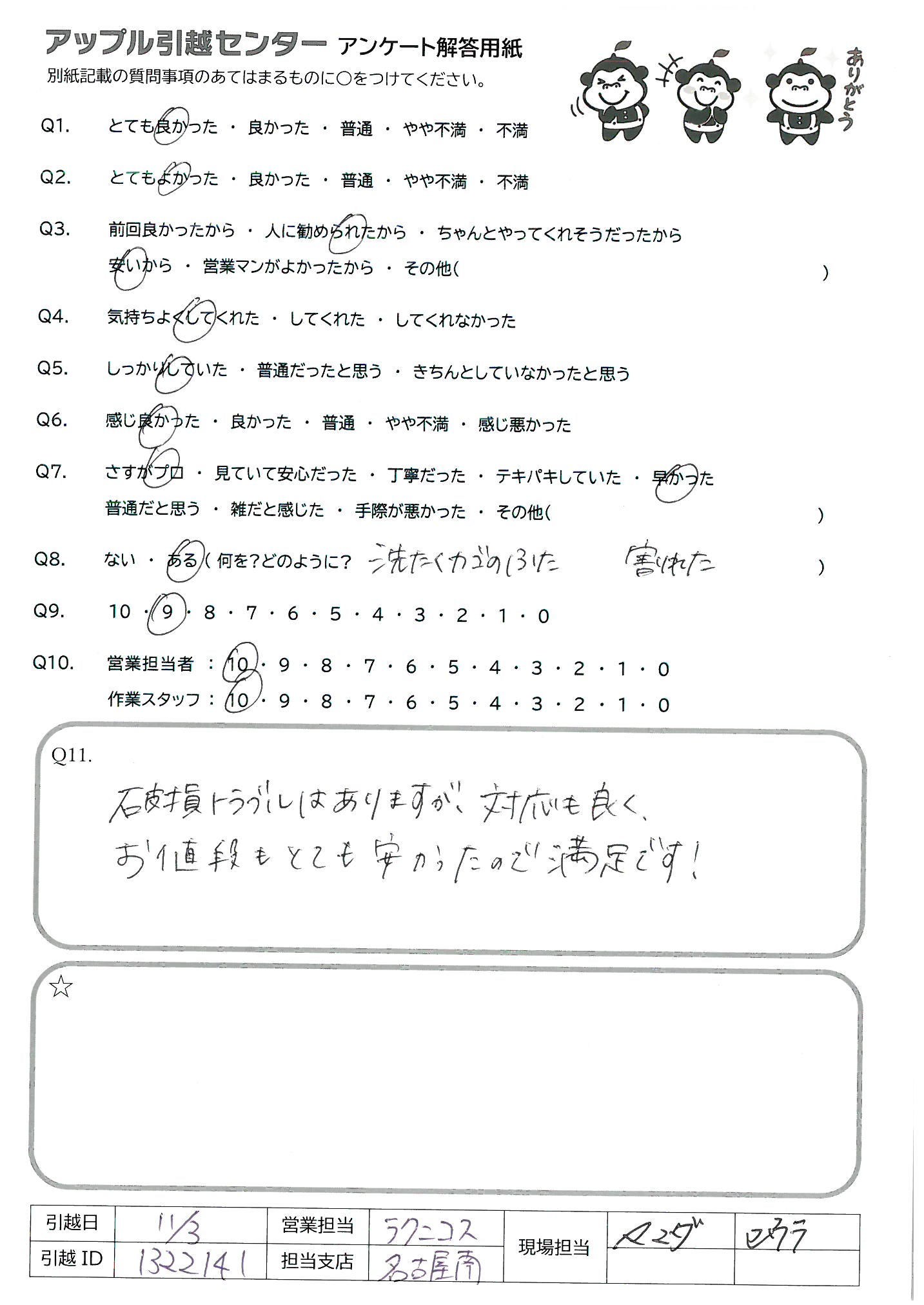 引越し日:2021年11月02日 エリア:愛知県名古屋市南区