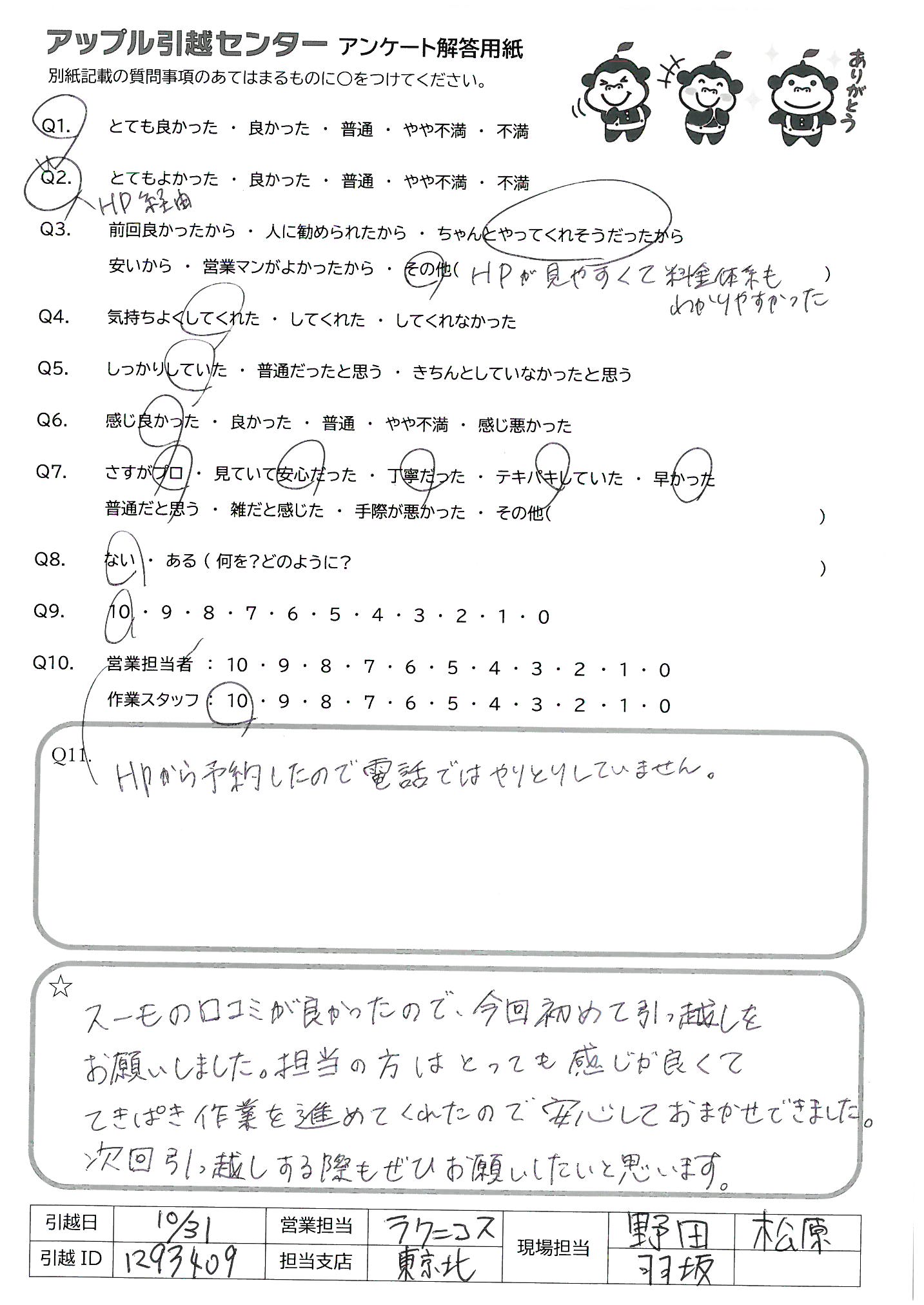 引越し日:2021年10月31日 エリア:東京都世田谷区
