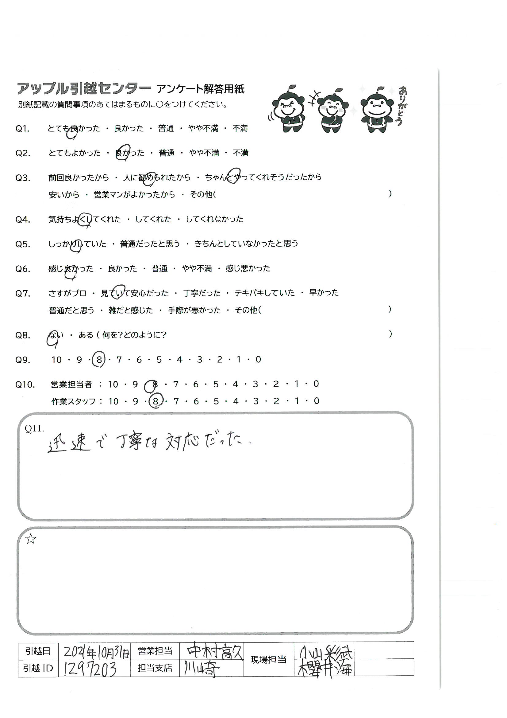 引越し日:2021年10月31日 エリア:神奈川県川崎市川崎区