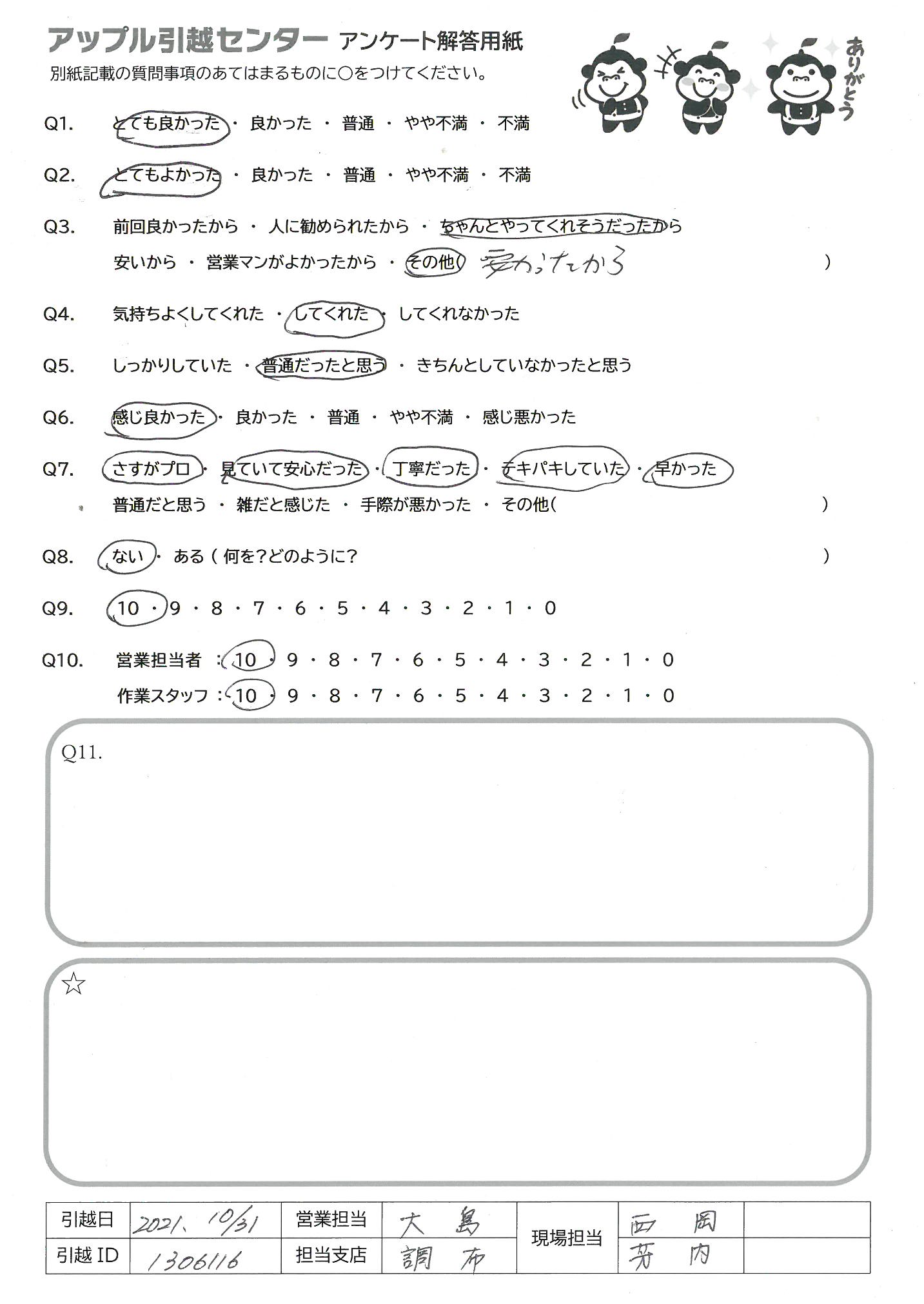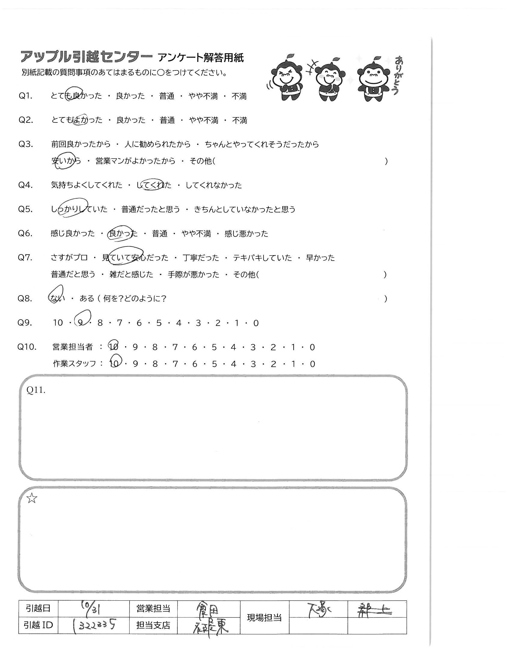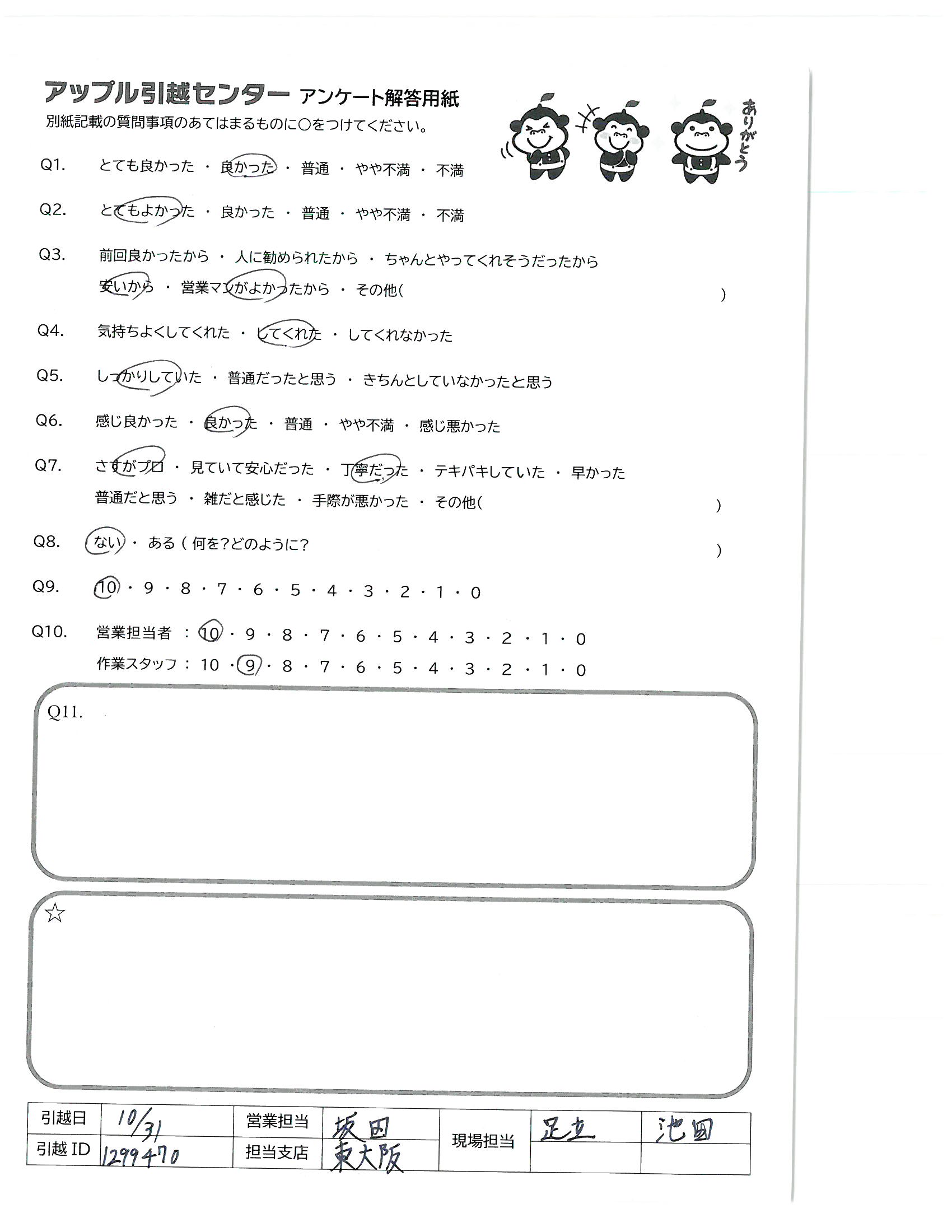 引越し日:2021年10月31日 エリア:大阪府大阪市鶴見区